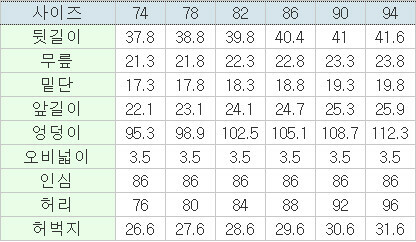 하의 74(28~29),78(30~31),82(32~33),86(34~35),90(36~37),94(38)