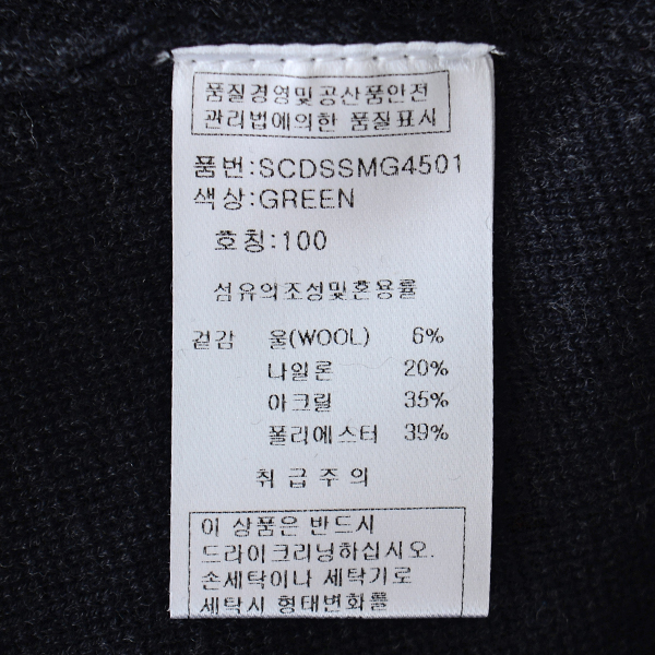 제품소재 : 모6%나일론20%아크릴35%폴리에스터39%