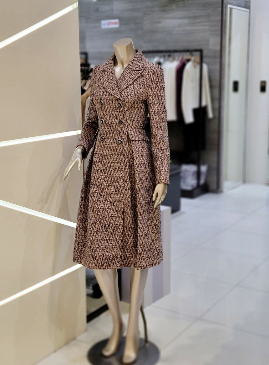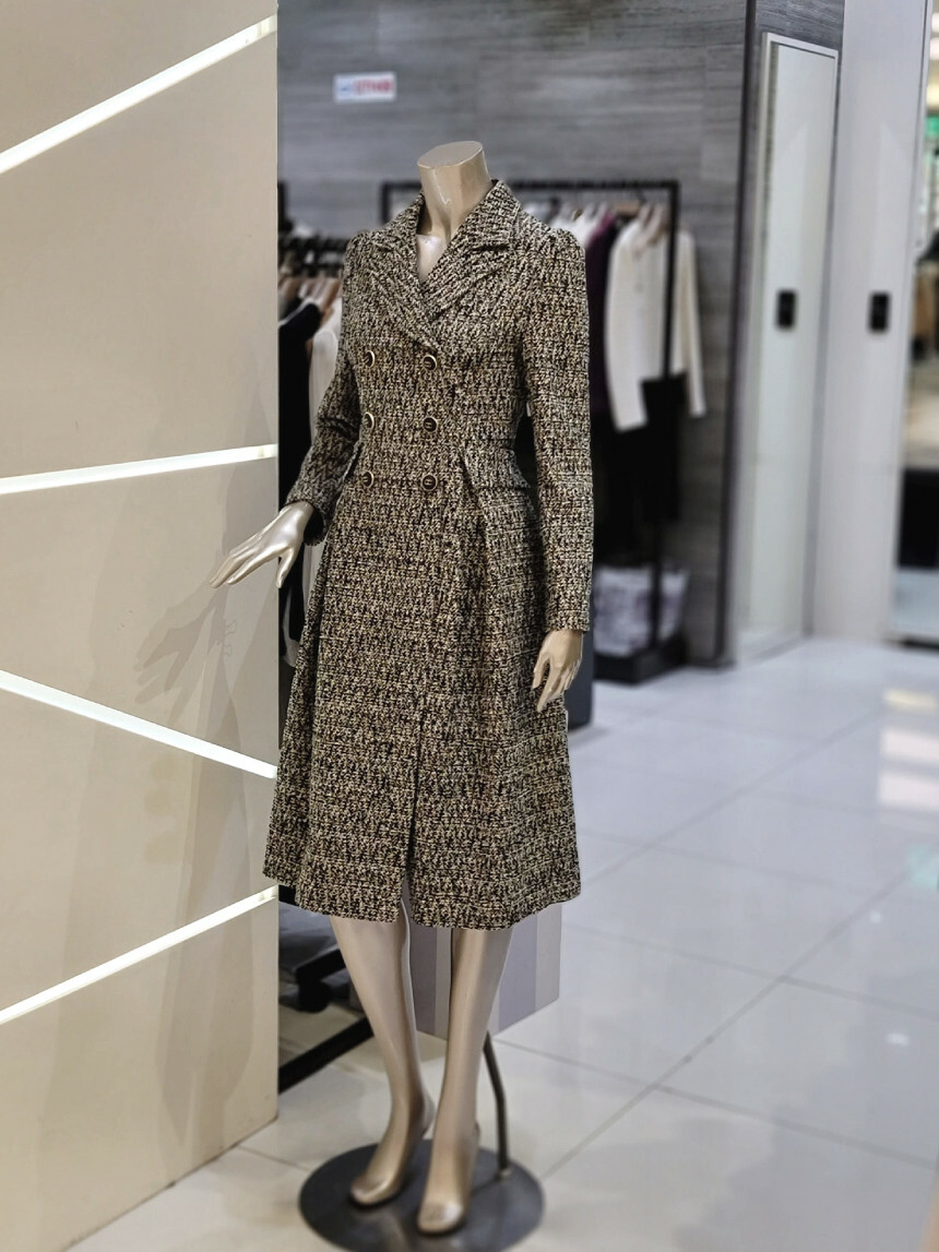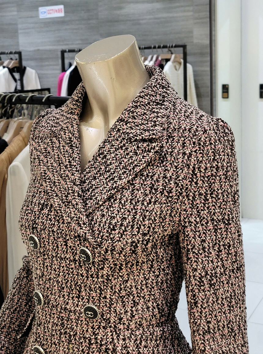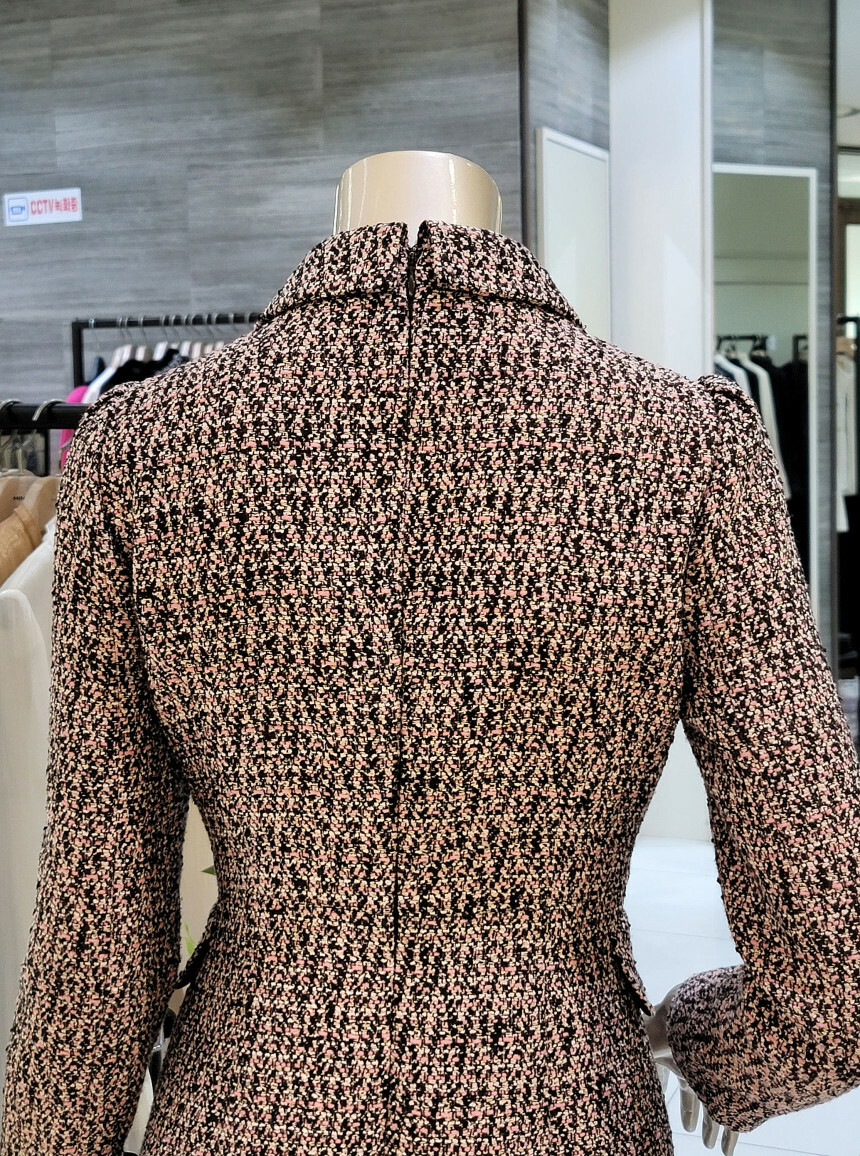 고급스러운 헤링본 패턴에 더블 버튼 장식으로