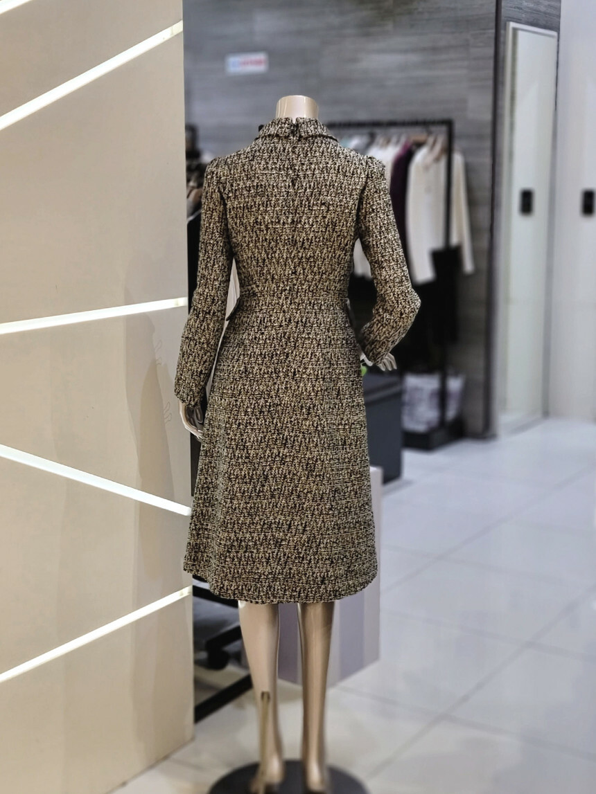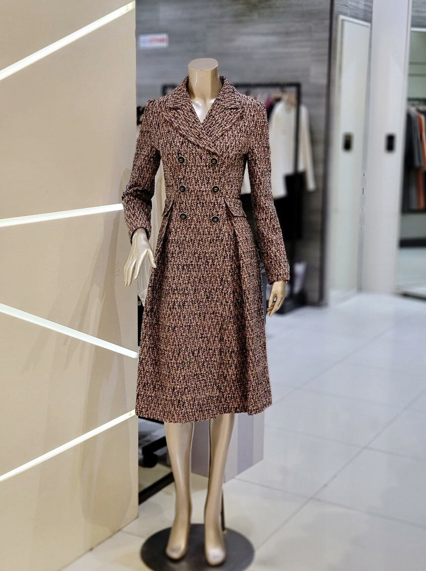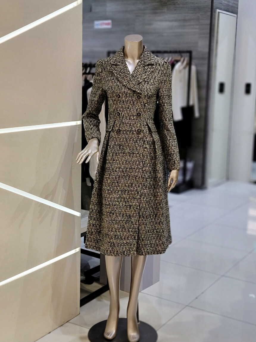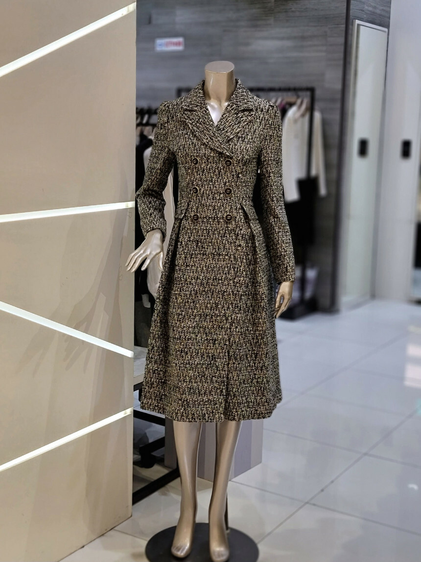 고급스러운 헤링본 패턴에 더블 버튼 장식으로