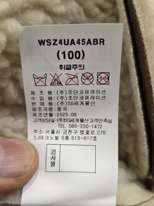 겉감2 : 폴리에스터 90% , 아크릴 10%