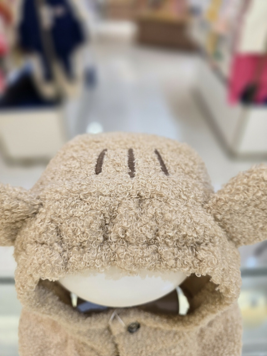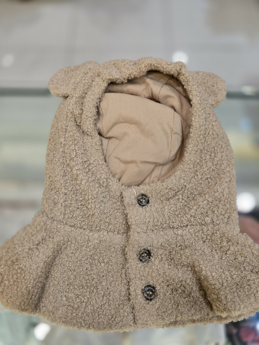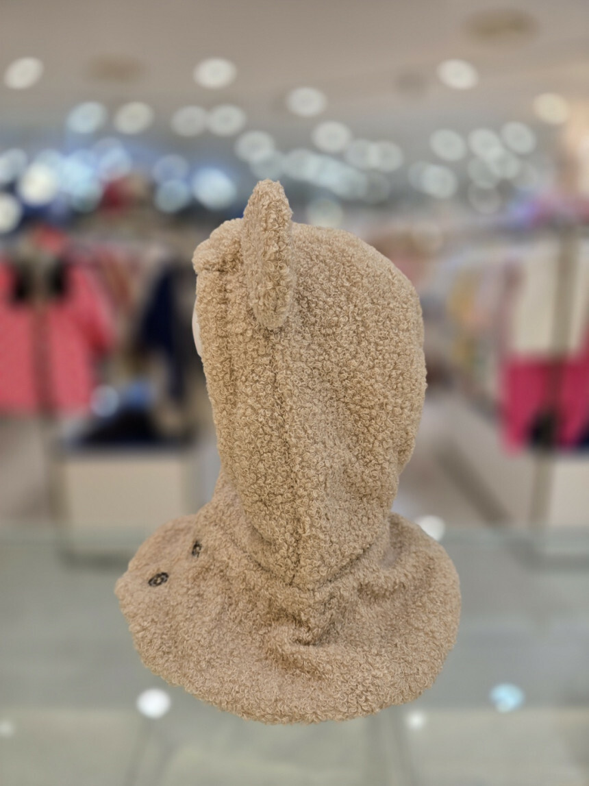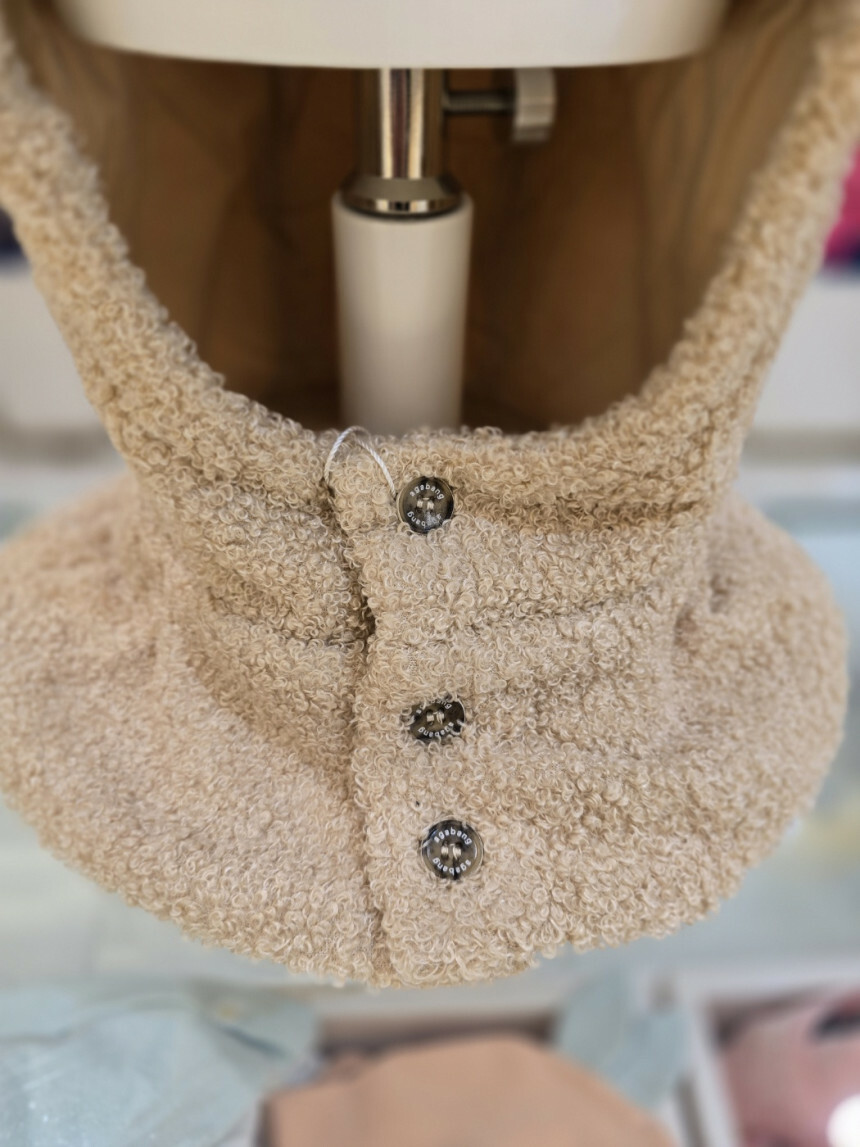목까지 내려오는 귀여운 목도리와 모자랑 섞인 느낌의 모자예요~