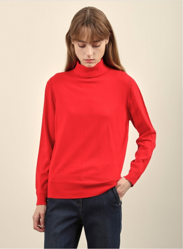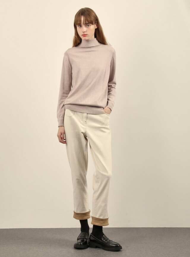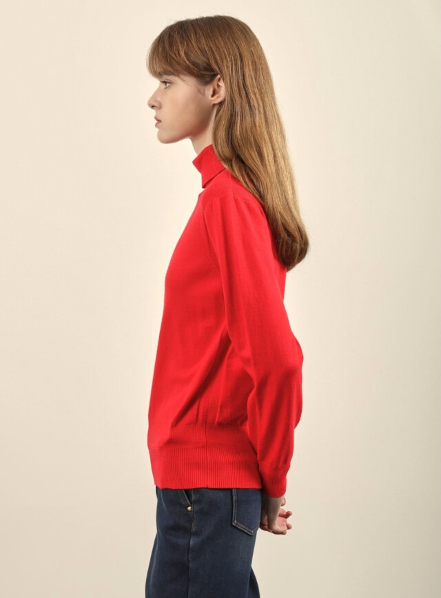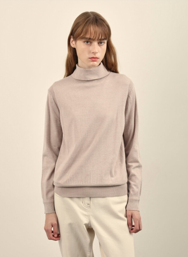 목을 부드럽게 감싸주는 하이넥 스타일의 니트