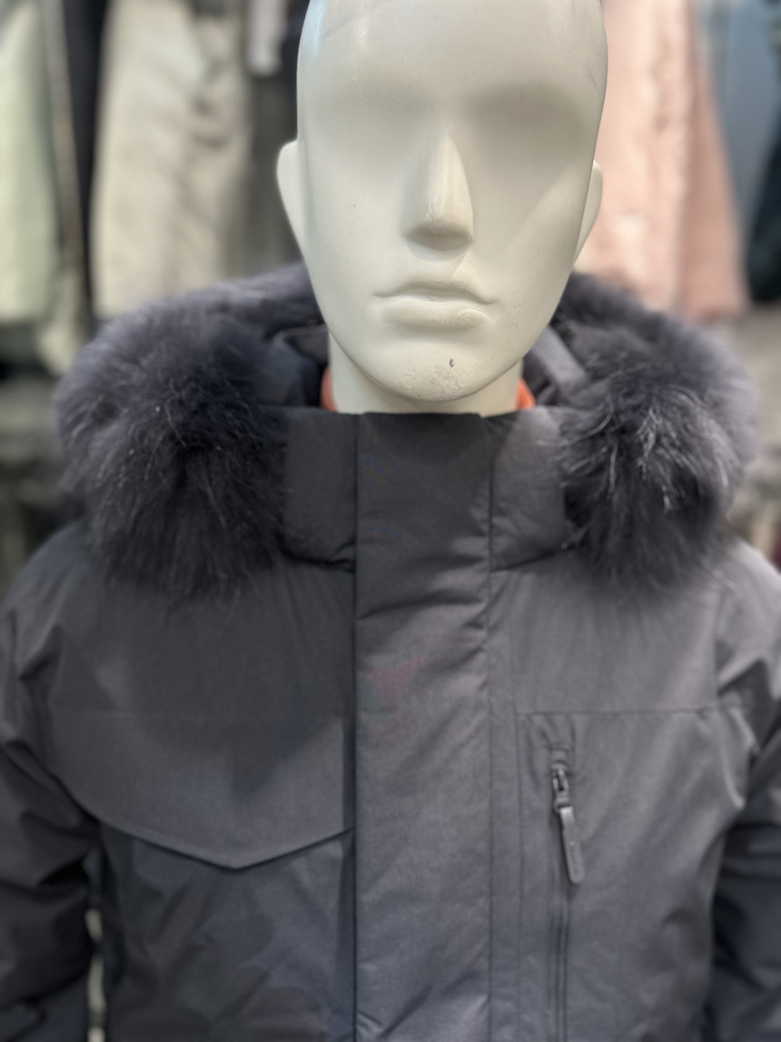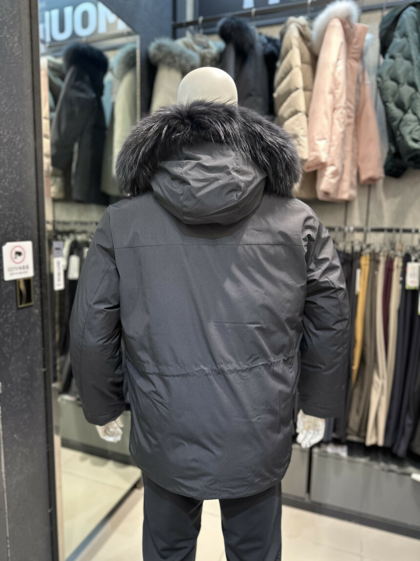 라쿤퍼를 적용한 남성 중기장 헤비 다운자켓