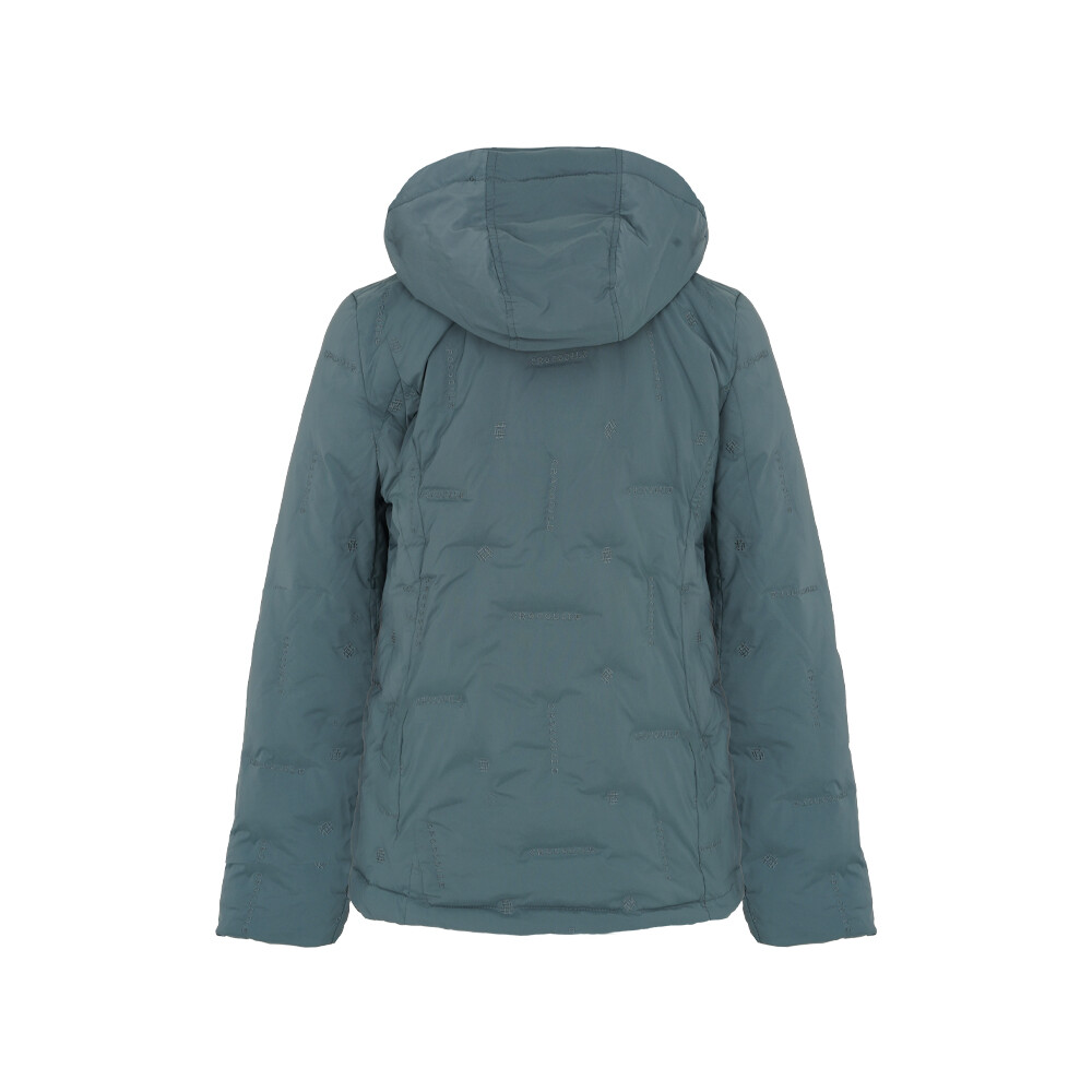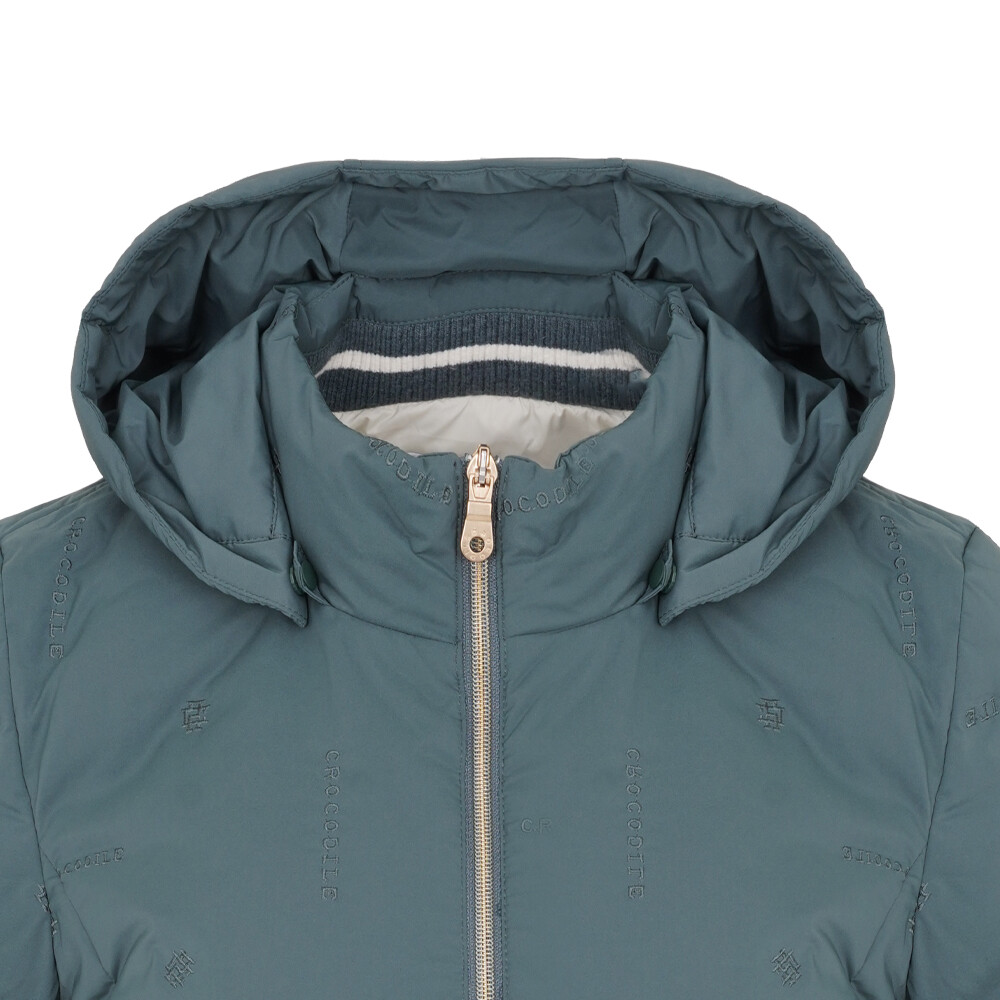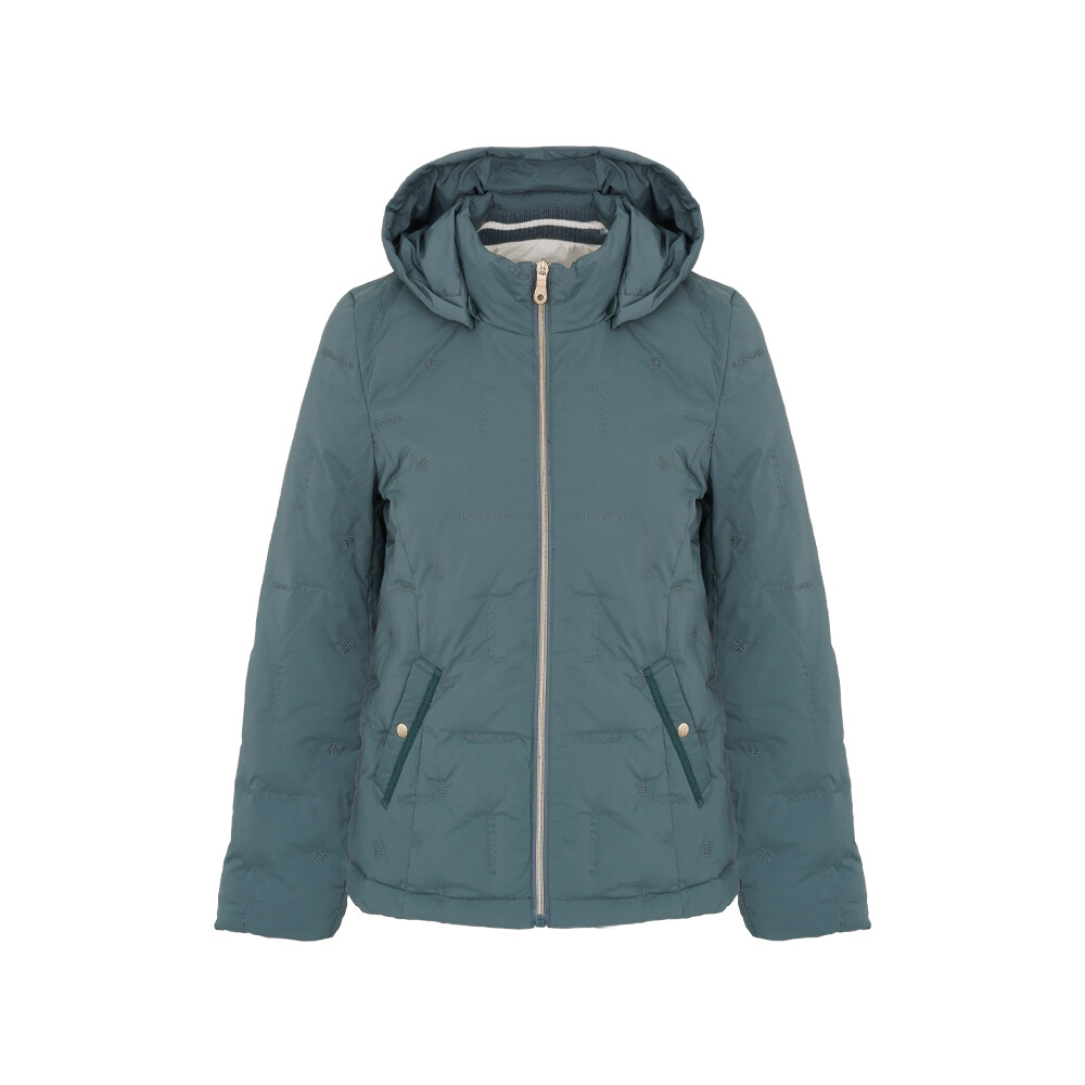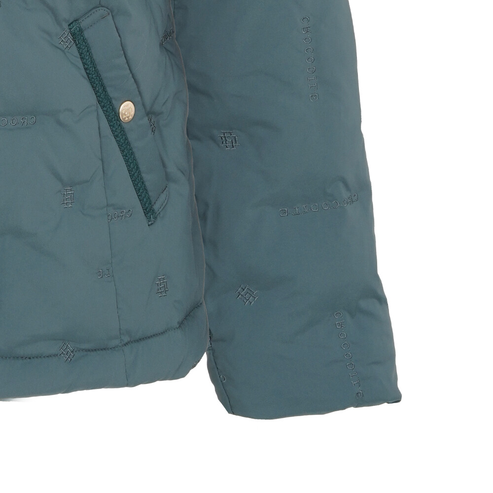 (G라인)|*|(와일드로즈) 앞판의 고급스러운 로고 자수가 포인트인 숏기장의 덕다운 점퍼. 후드 탈부착이 가능하며|*| 니트소매로 보온력을 높은 다운 아이템.