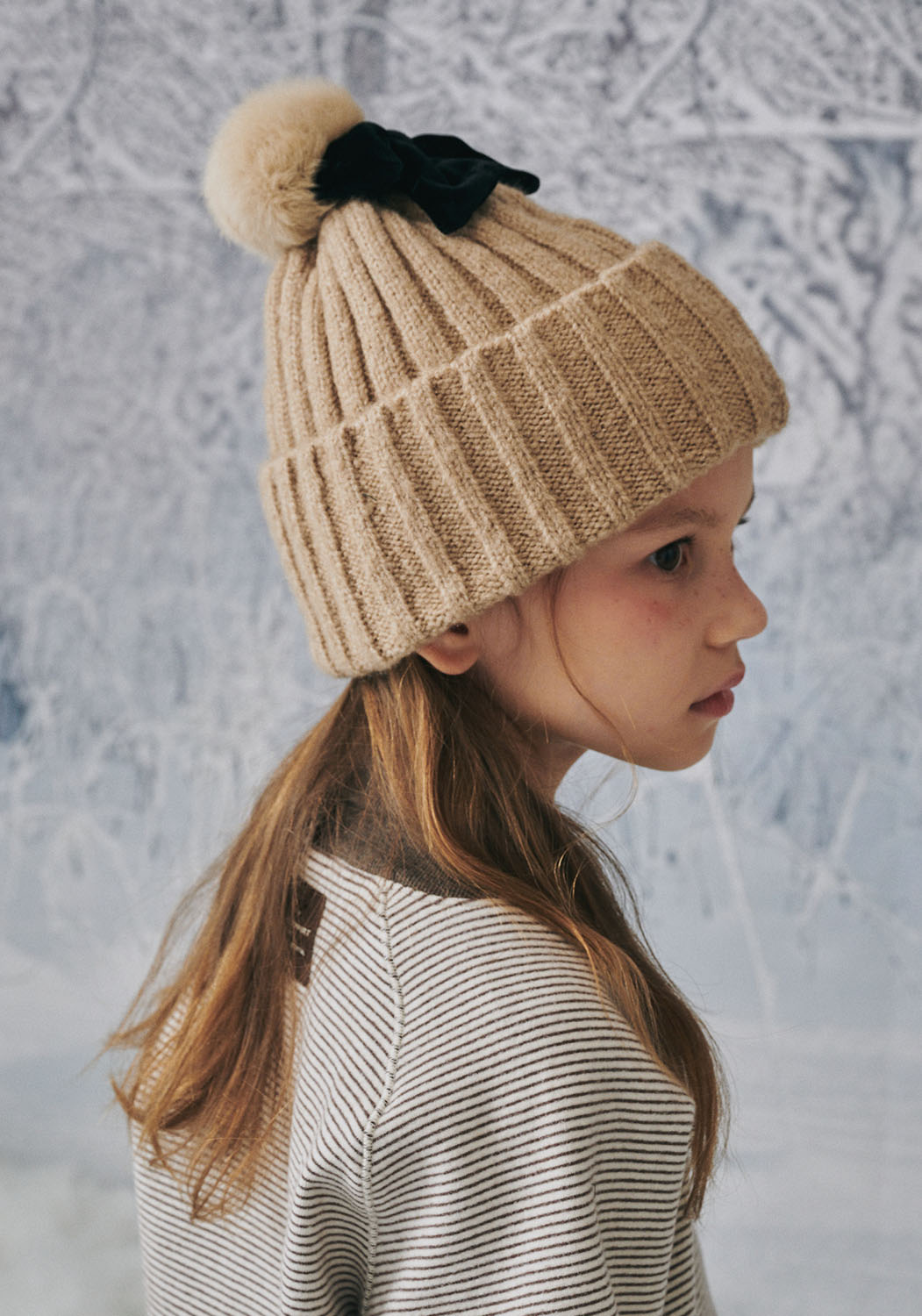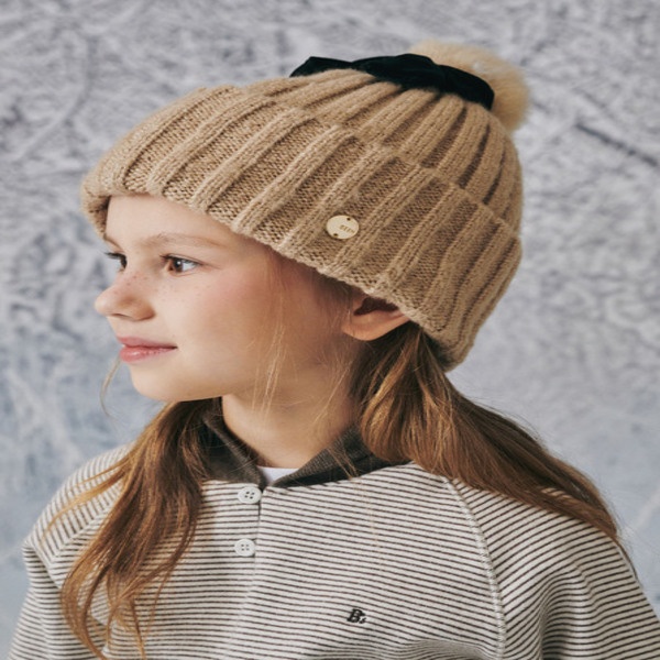 사랑스러운 디자인의 여아용 베이지 니트 비니로,