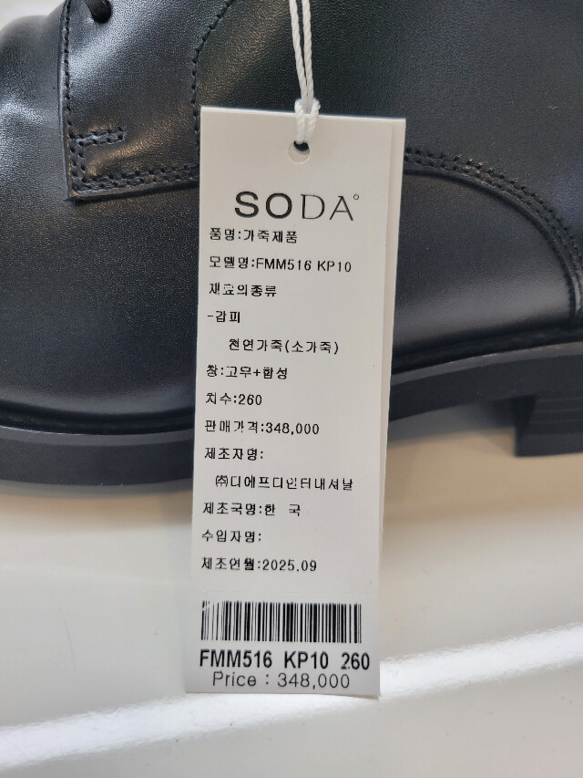 소다 경량화 구두 입니다. 기본 스타일로 나온 신발이기 때문에 캐주얼 정장 어디에나 사용할 수 있는 디자인입니다.