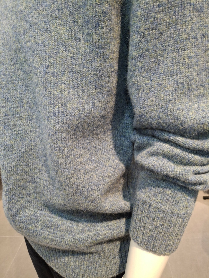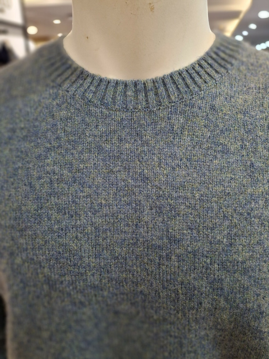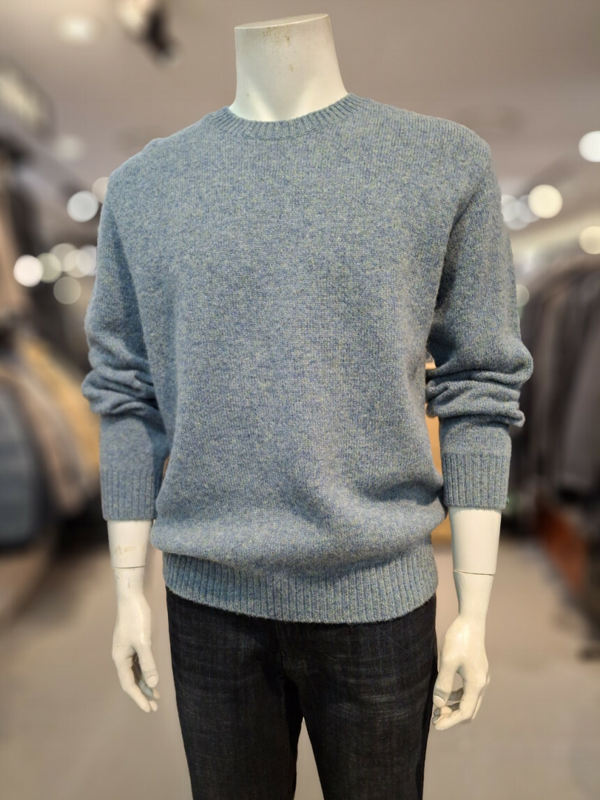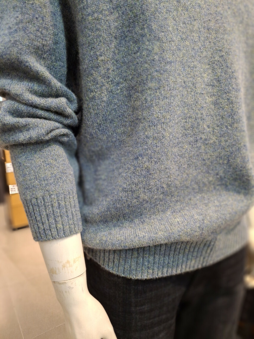 여러가지 컬러가 섞인듯한 멜란지한 느낌의 울100% 라운드니트