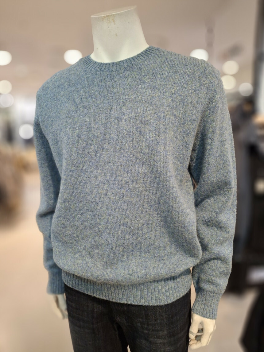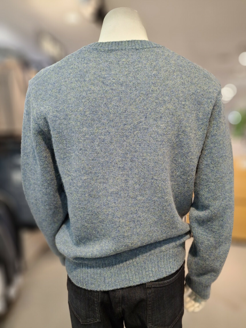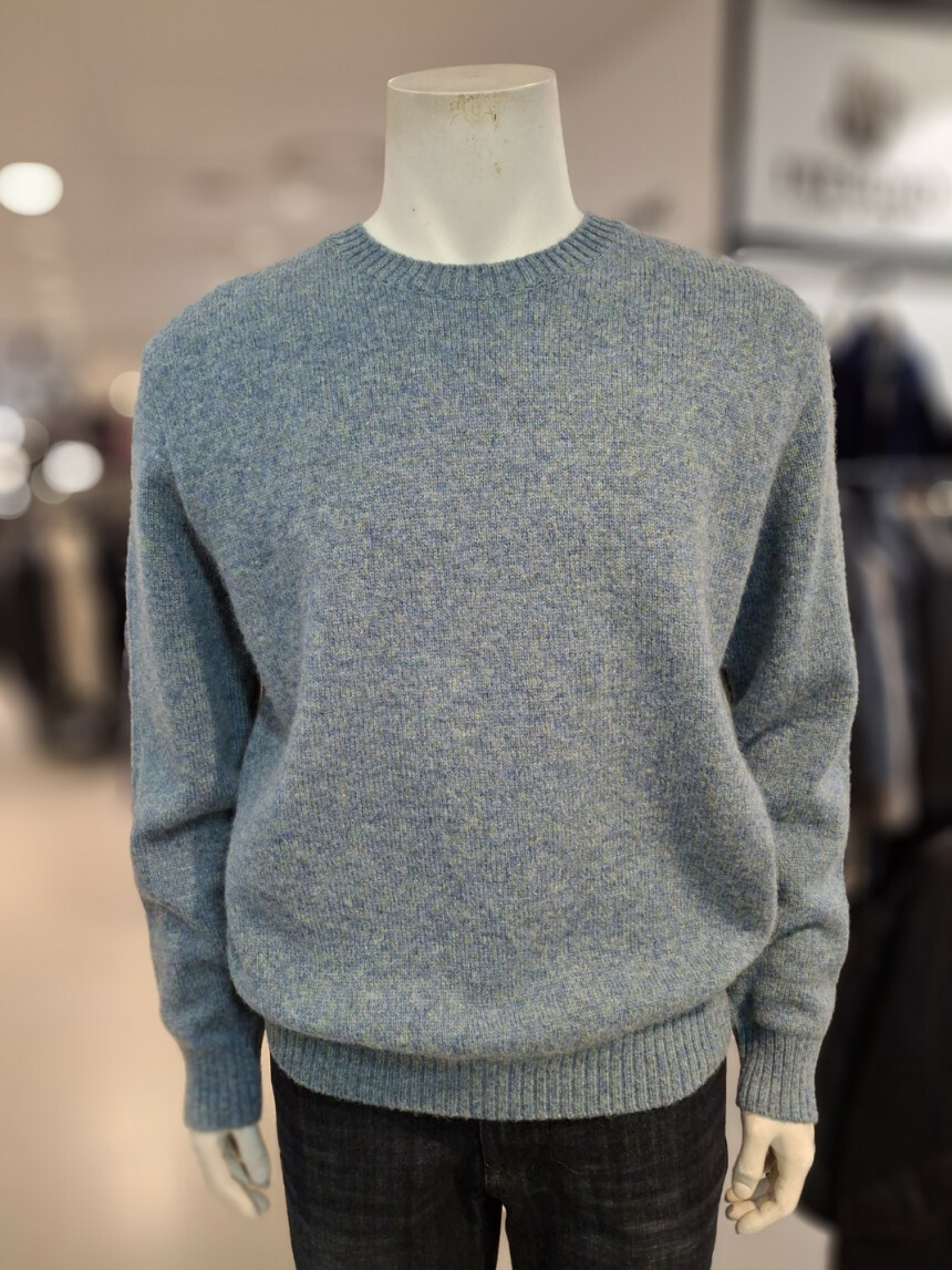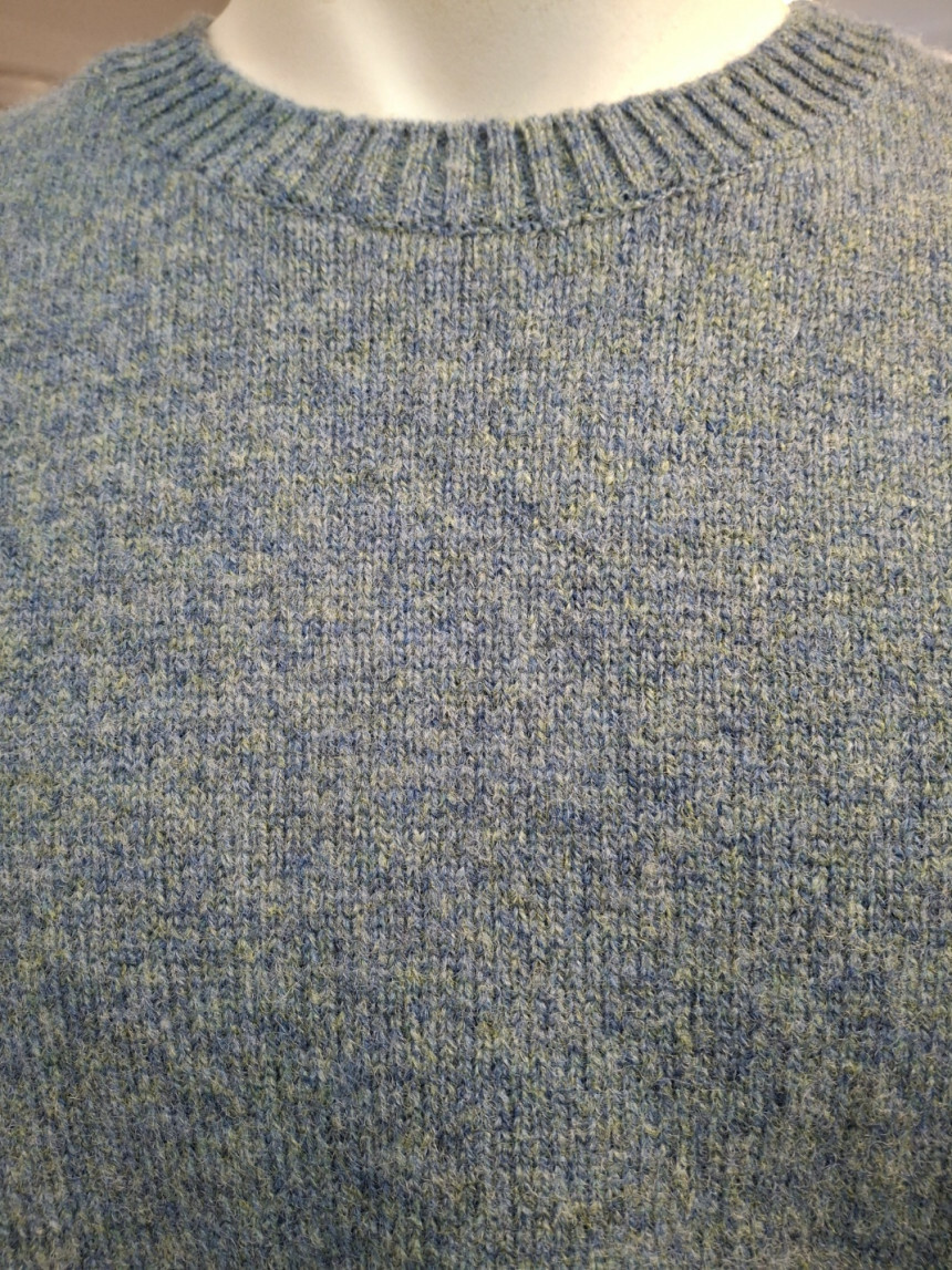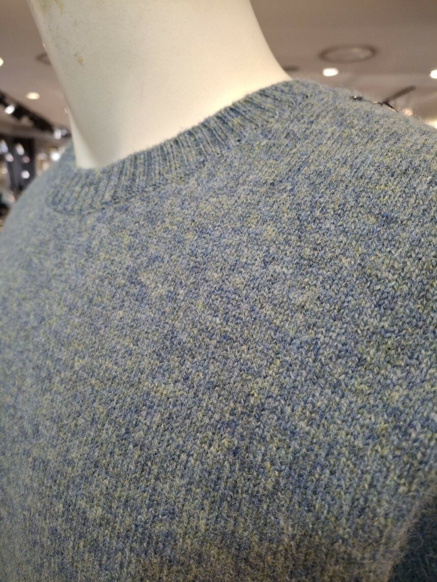 여러가지 컬러가 섞인듯한 멜란지한 느낌의 울100% 라운드니트