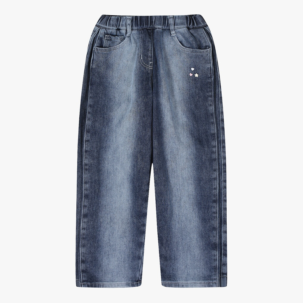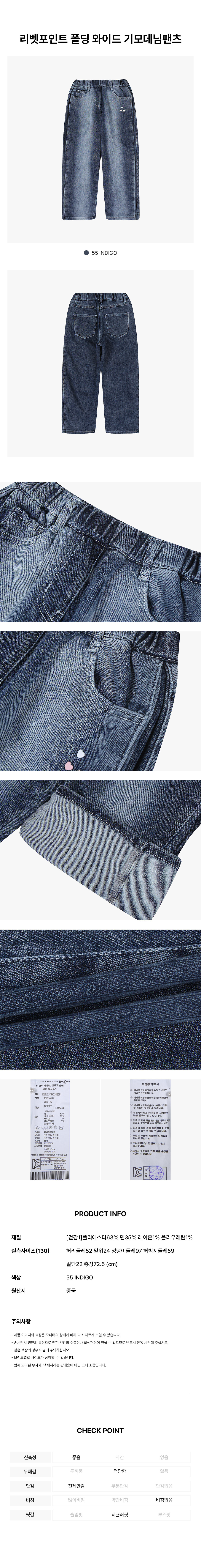 리벳 포인트 폴딩 와이드 기모 데님팬츠