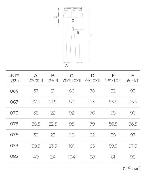 사이즈 : 64(25),67(26),70(27~28),73(29),76(30),79(31),82(32)