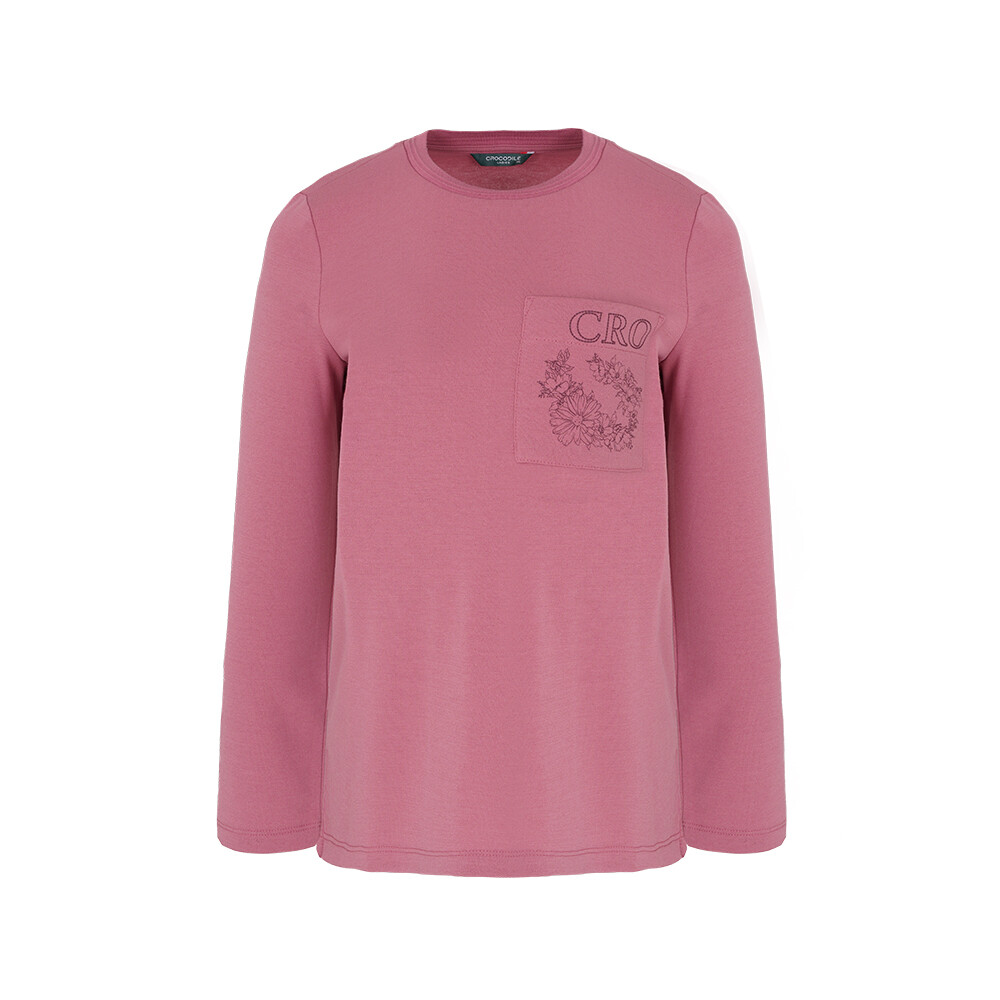 주머니에 은은한 프린트가 고급스러운 솔리드 티셔츠로 이너로 코디하기 용이한 아이템입니다