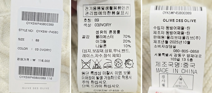· 취급 시 주의사항 : 원단특성상 마찰시 이염,보풀,미어짐이 발생 가능하므로 착용시 주의 하십시오.