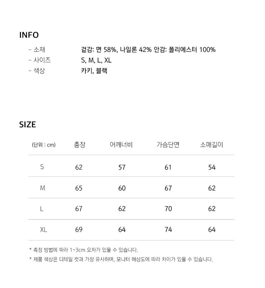 * 마네킹 모양에 따라 좌,우 기장&라인이 틀려 보일 수 있습니다 *