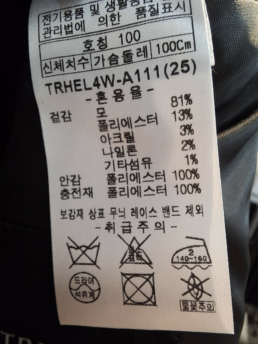 울 81% 보온성은 물론 퀄리티좋은 등판누빔안감 겨울 모직코트