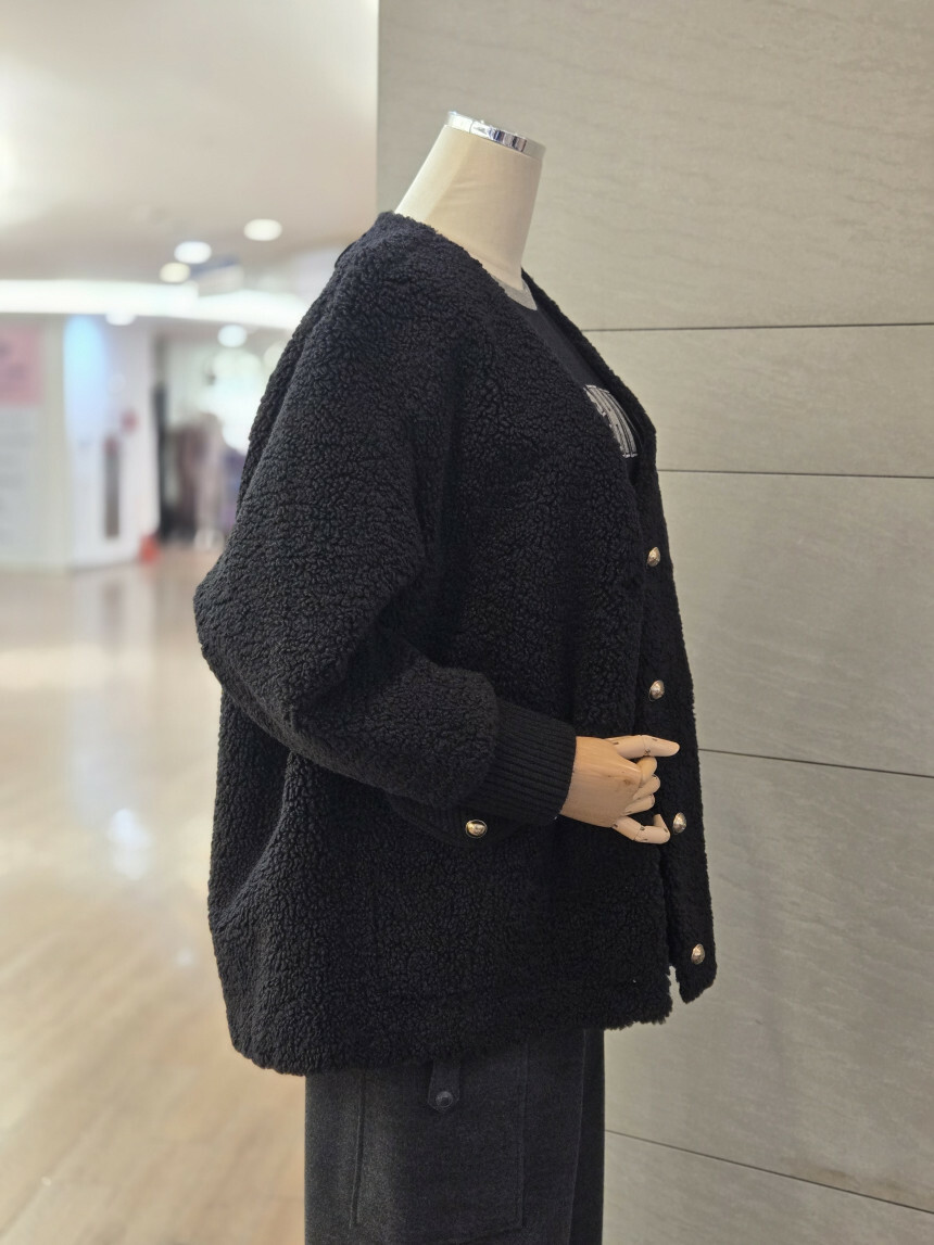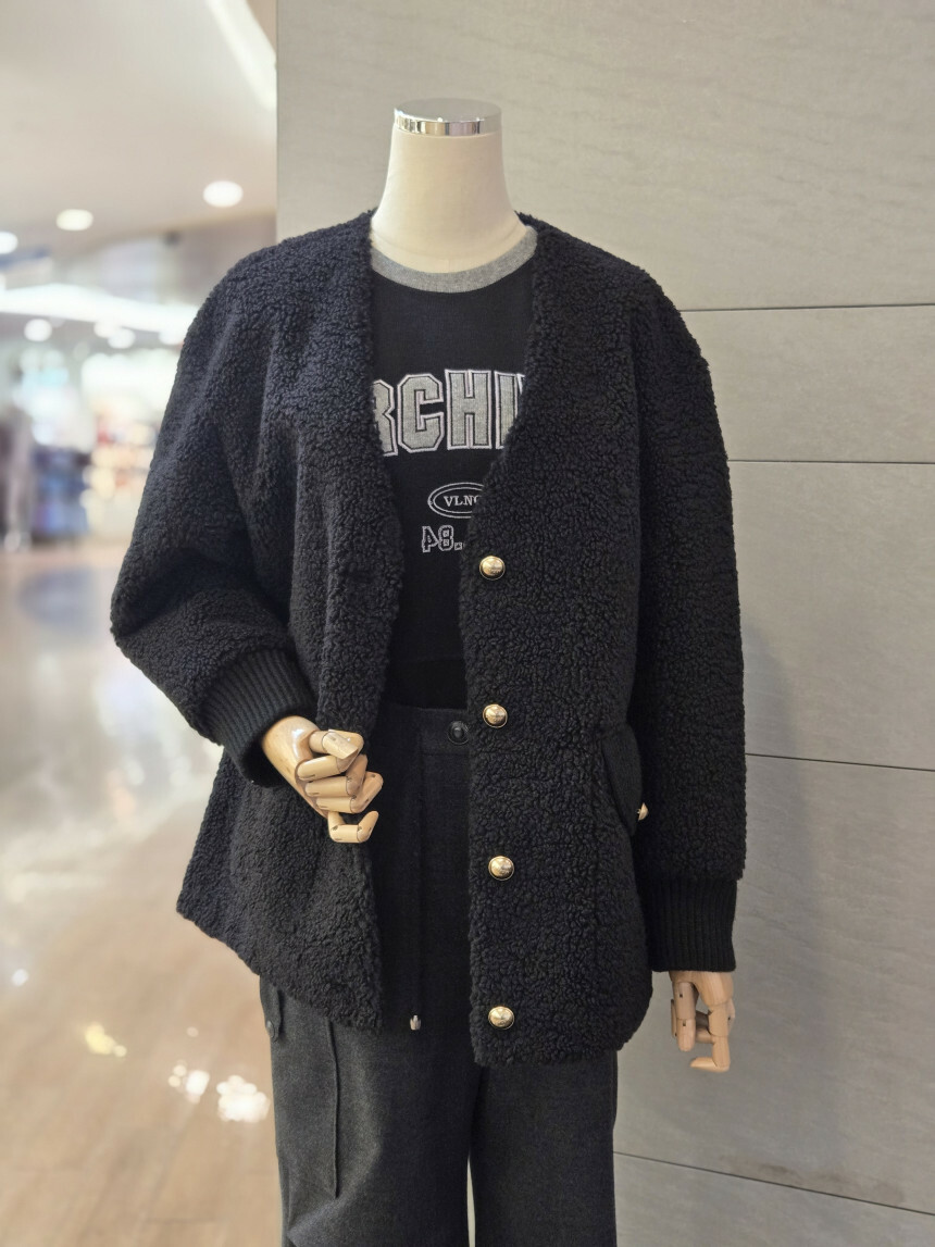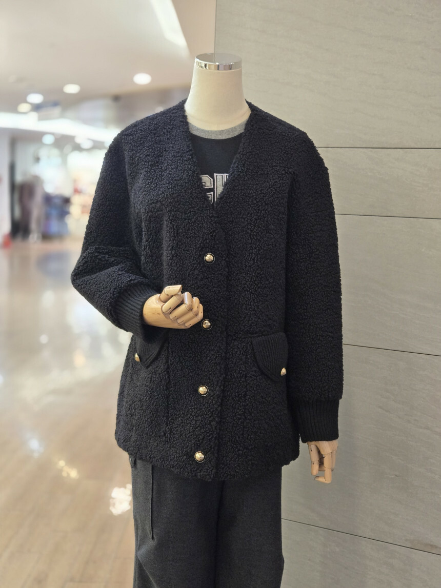 페이크 퍼 루즈핏 니트배색재킷25AGI19