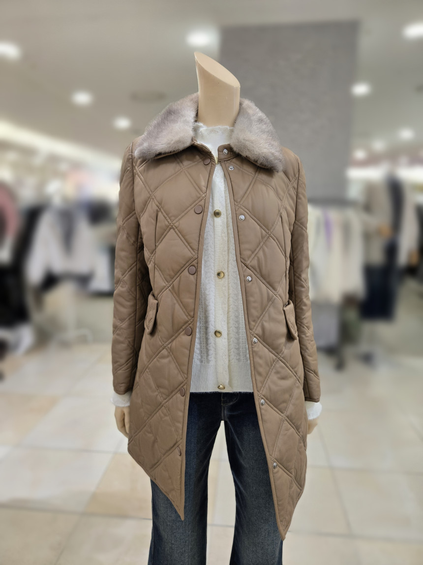 밍크 카라 탈착 양가죽 누빔 구스 점퍼 YL5X-H977