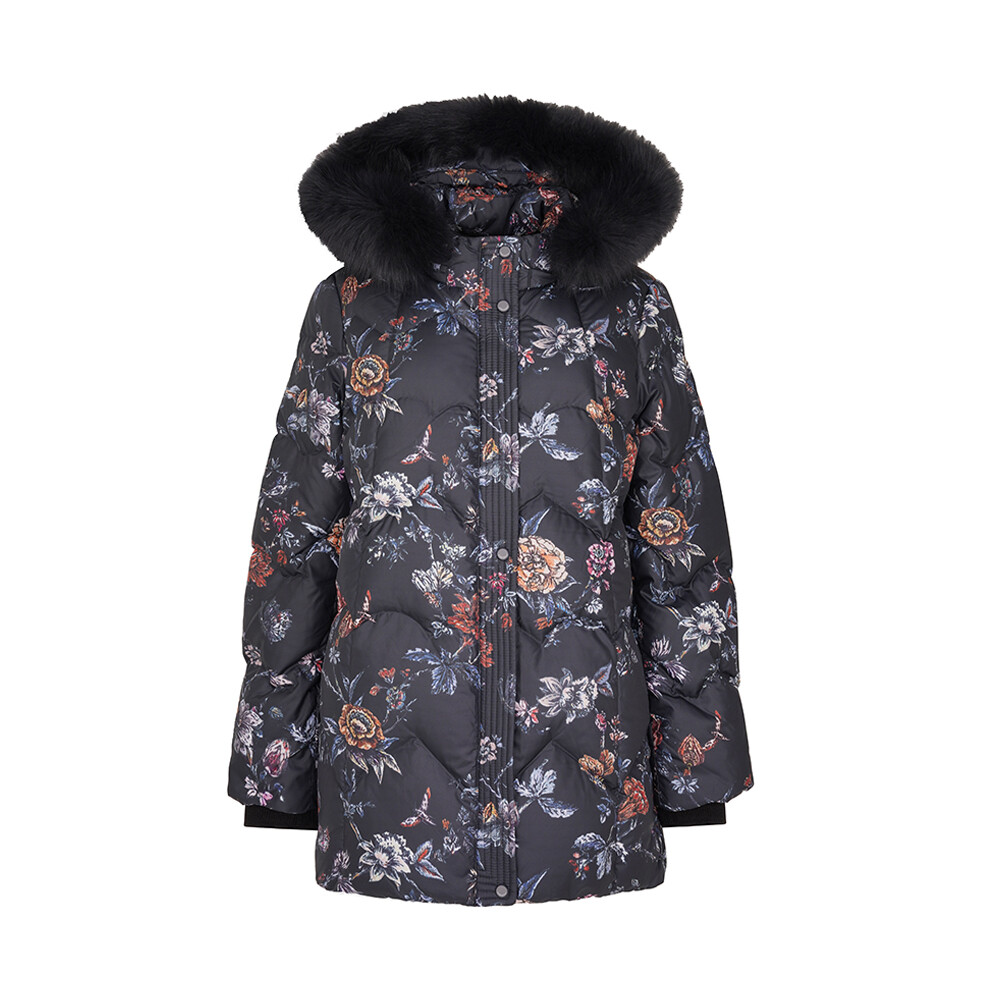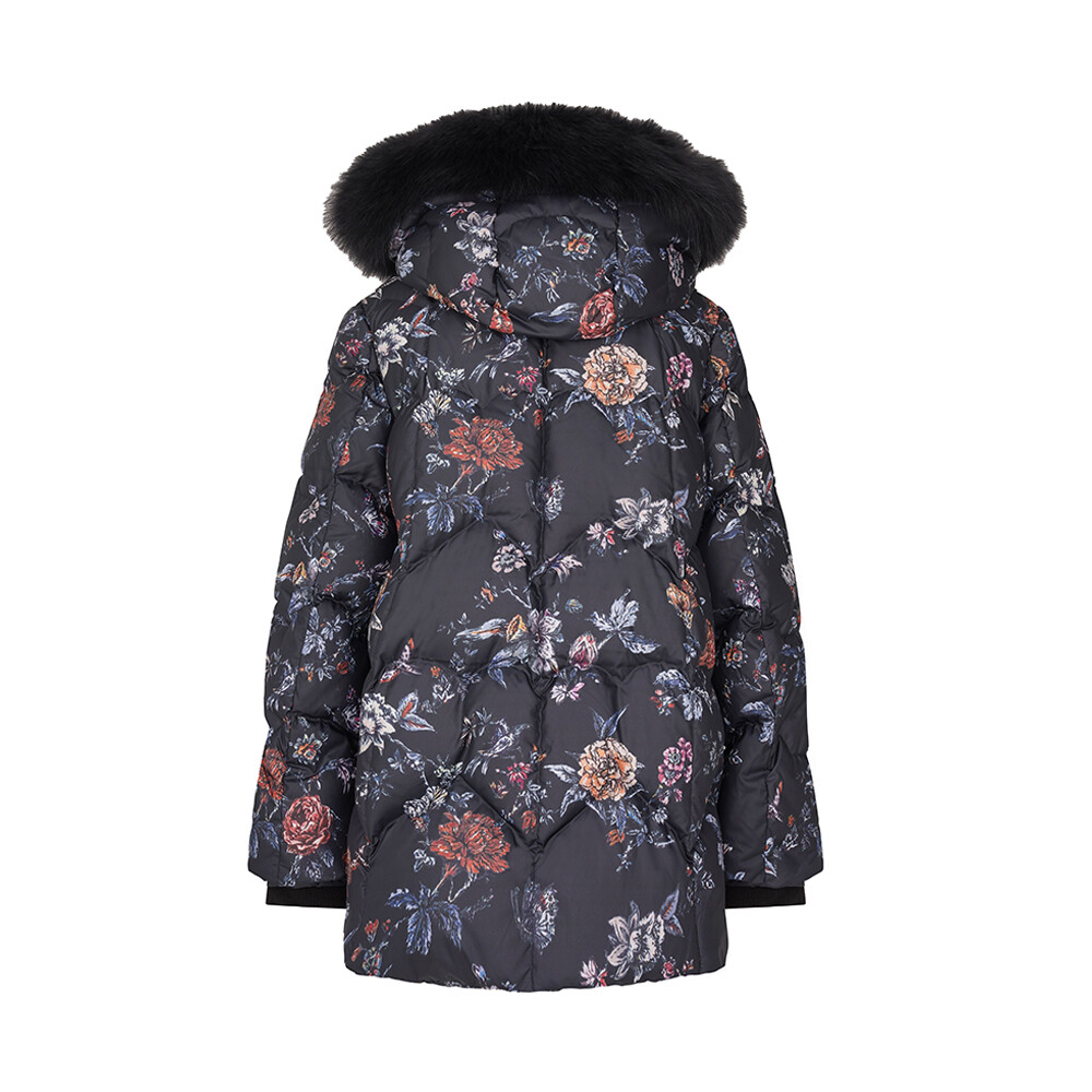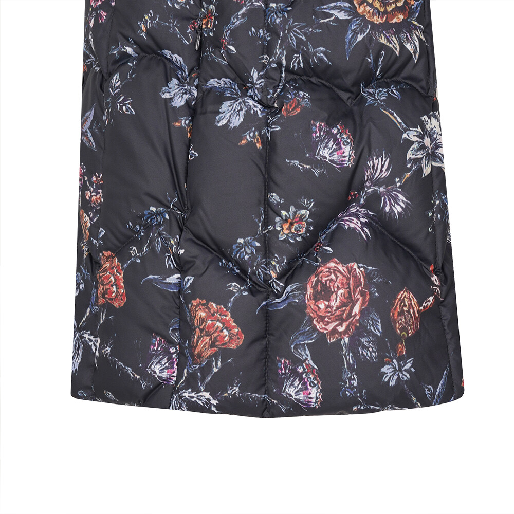 변형퀼팅에 힙덮는기장감에 에이라인 실루엣에 프린트 덕다운