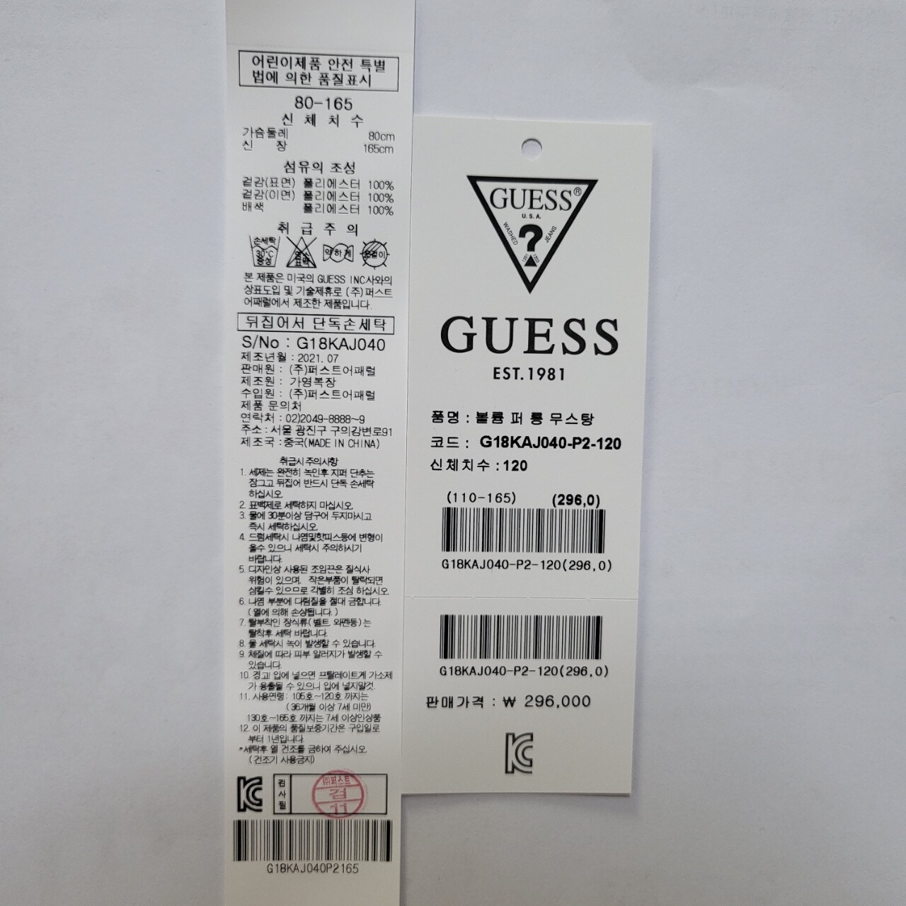 * 혼용율: 겉감 : 폴리에스터 100% 배색 : 면 100% 안감 : 폴리에스터 100% 충전재 : 폴리에스터 100%