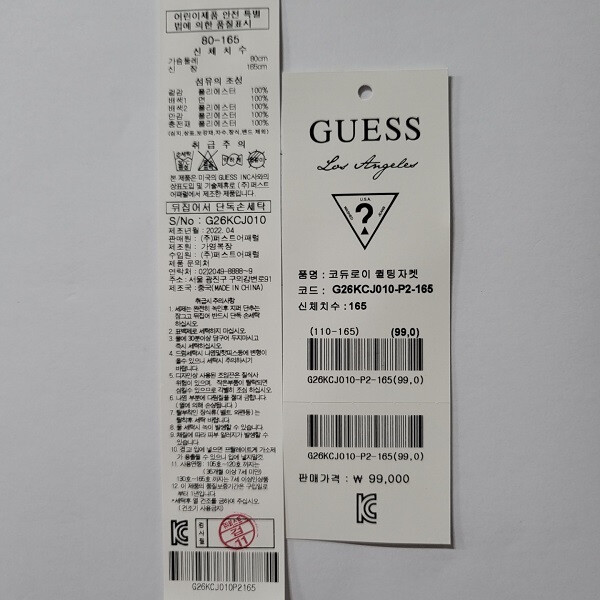 * 혼용율: 겉감 폴리에스터 100% 배색 1 면 100% 배색 2 레이온 100% 안감 폴리에스터 100% 충전재 폴리에스터 100%