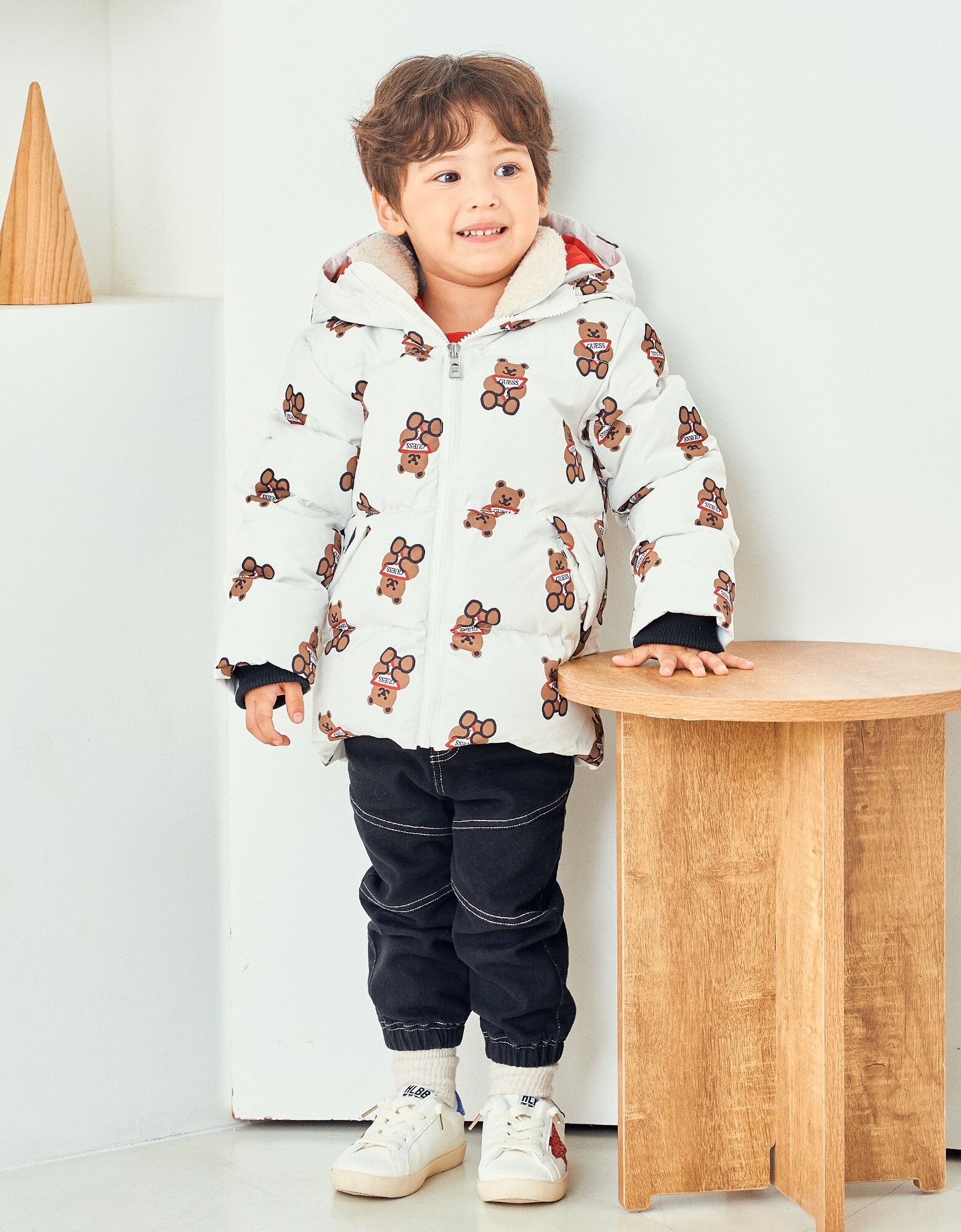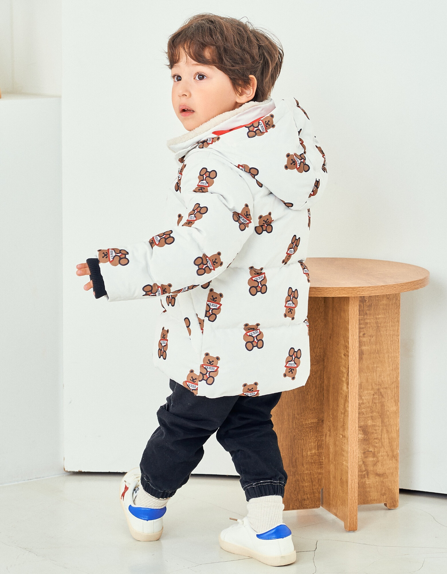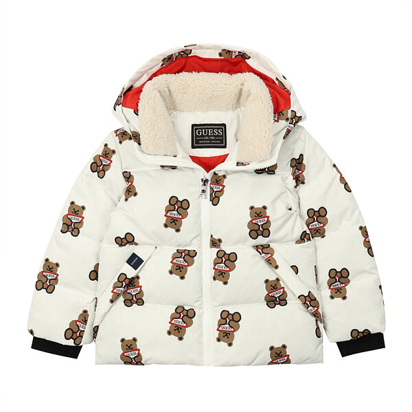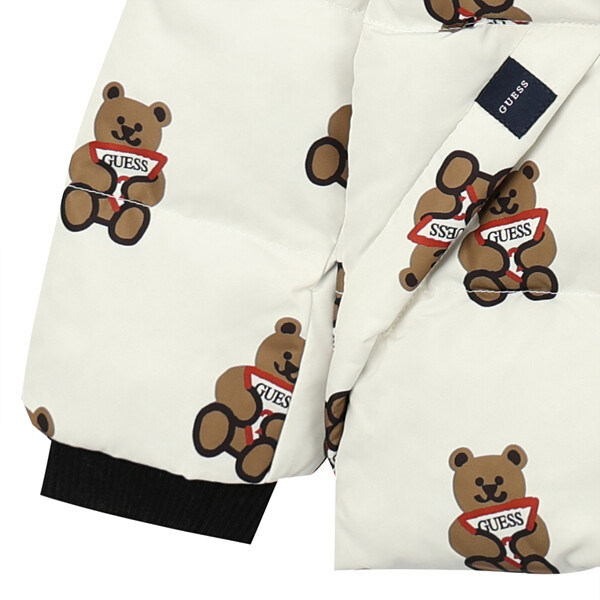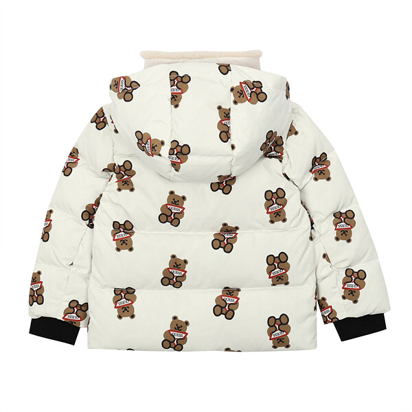 - 톡톡한 터치감의 화섬소재에 귀여운 느낌의 전판 오리지널 DTP를 사용한 솜털 80% 함량 덕다운 곰 전판 다운