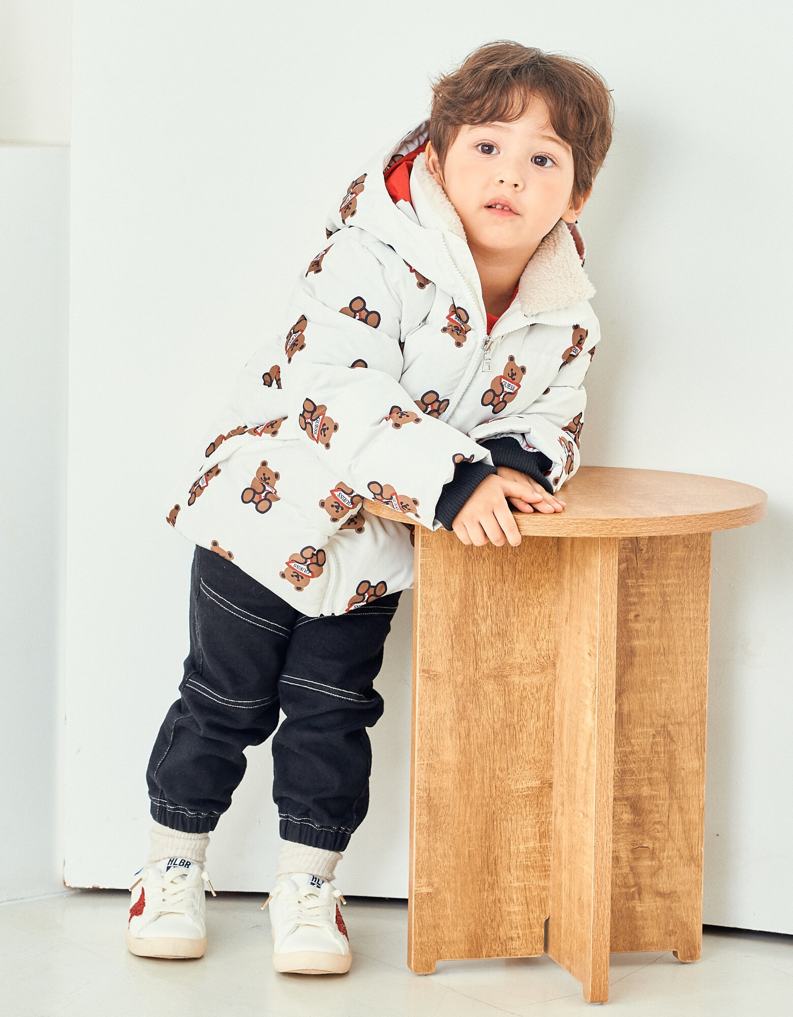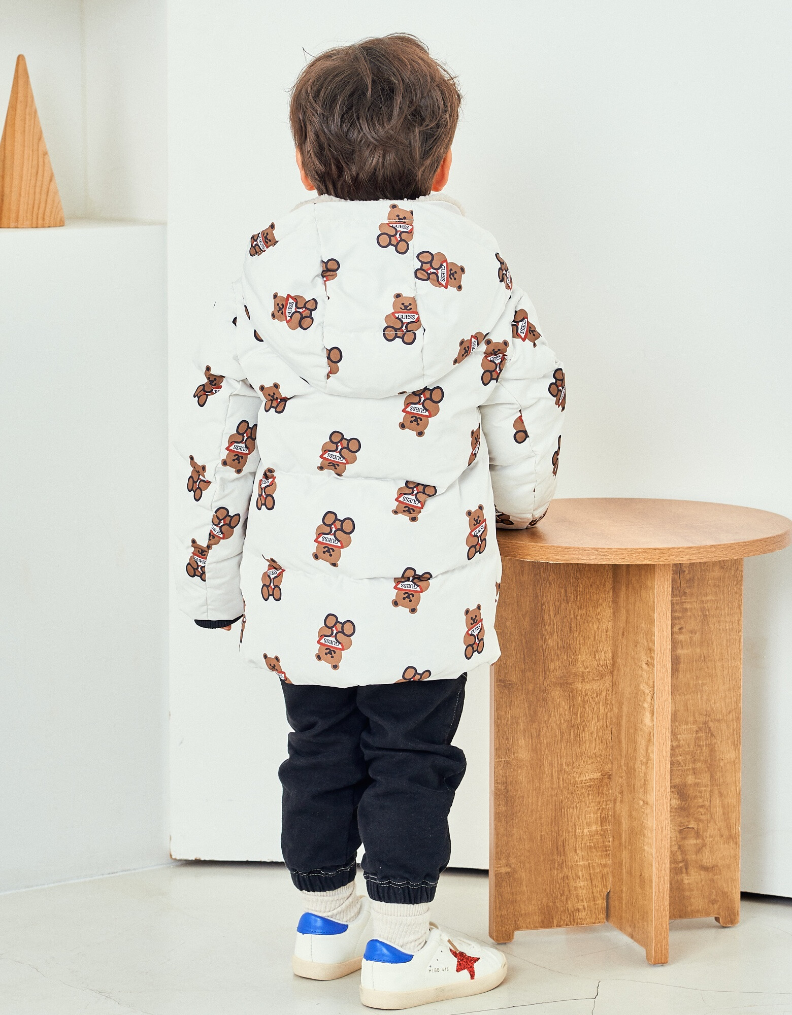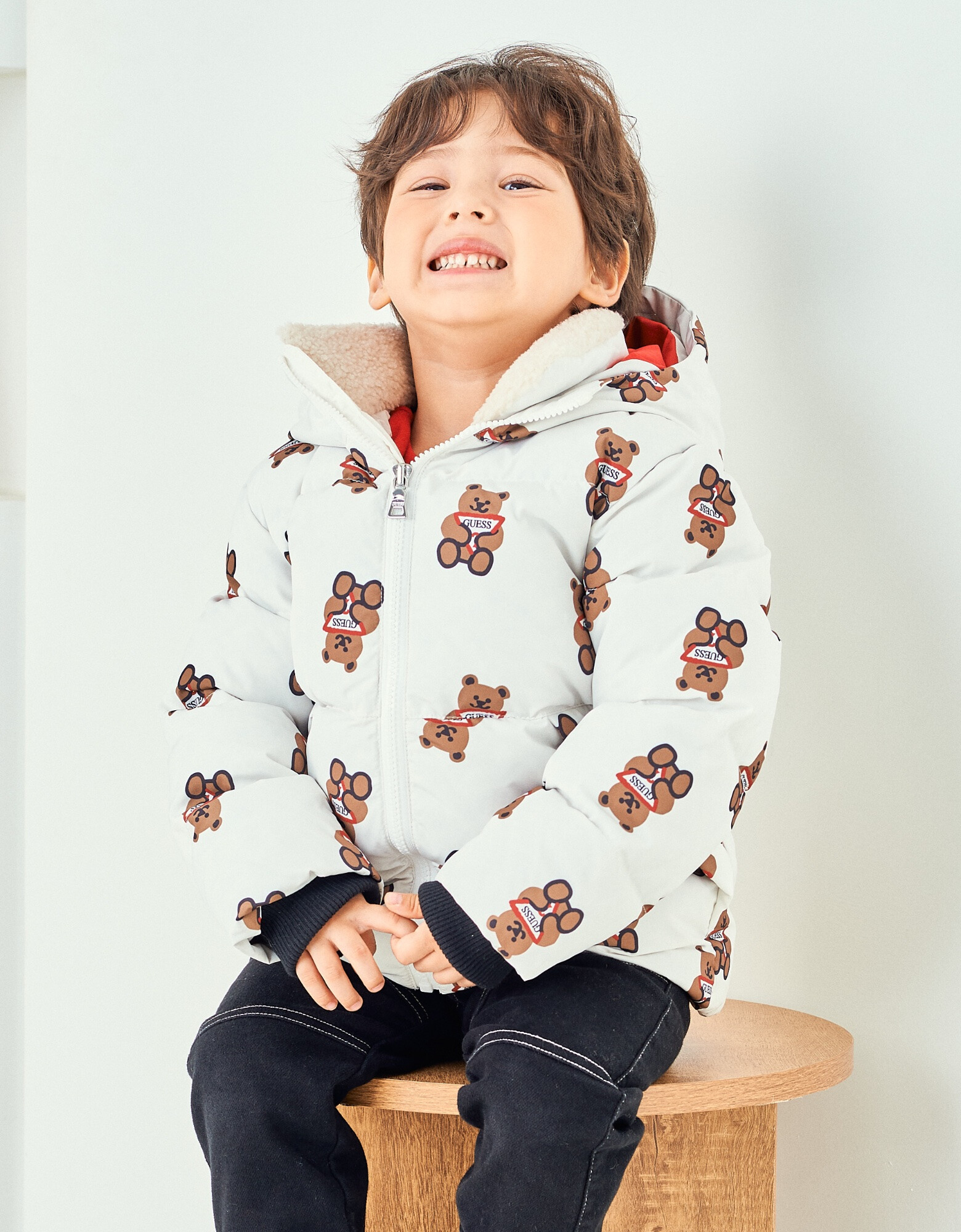 - 톡톡한 터치감의 화섬소재에 귀여운 느낌의 전판 오리지널 DTP를 사용한 솜털 80% 함량 덕다운 곰 전판 다운