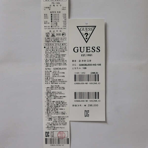 * 혼용율: 겉감 : 폴리에스터 100% 배색1: 폴리에스터 100% 배색2 : 폴리에스터 95% 폴리우레탄 5% 안감 : 폴리에스터 100% 충전재1 : 오리솜털 80% 오리깃털 20% 충전재2 : 폴리에스터 100%