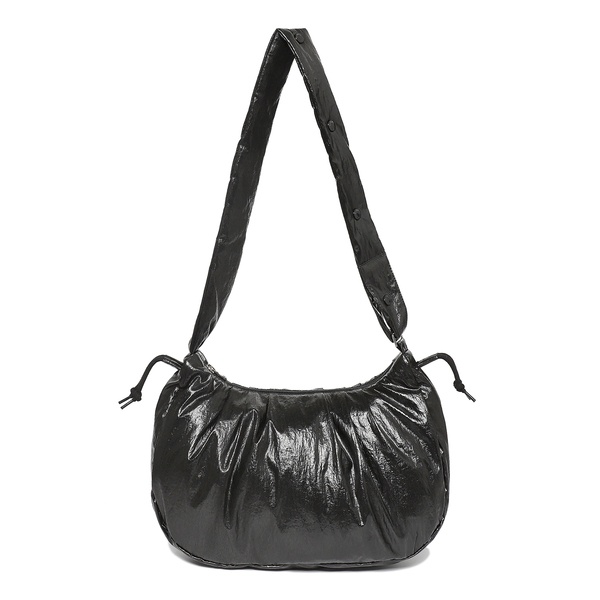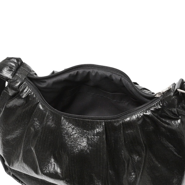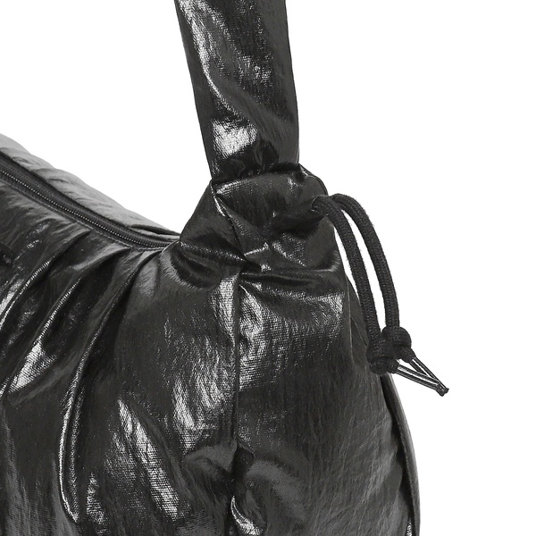 블랙 컬러의 광택감 있는 소재를 사용하여 힙스러운 무드를 더해줍니다.
