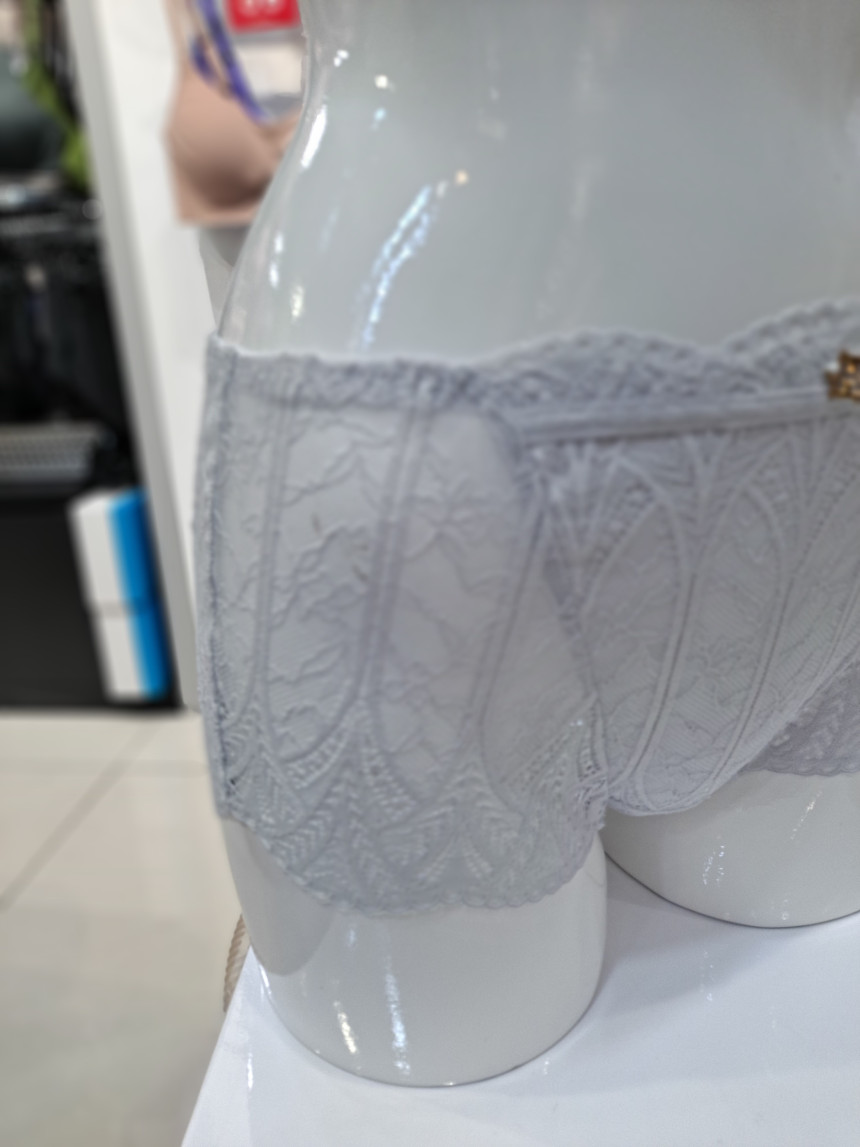 뒷판 중앙 레이스와 PN망을 매치하여 여성스러움을 강조하고 하이웨스트 스타일의 팬티 로