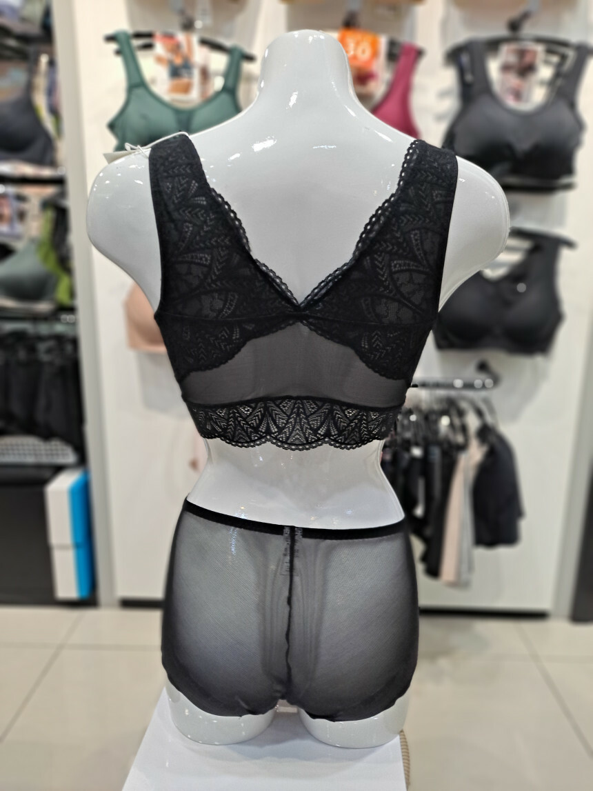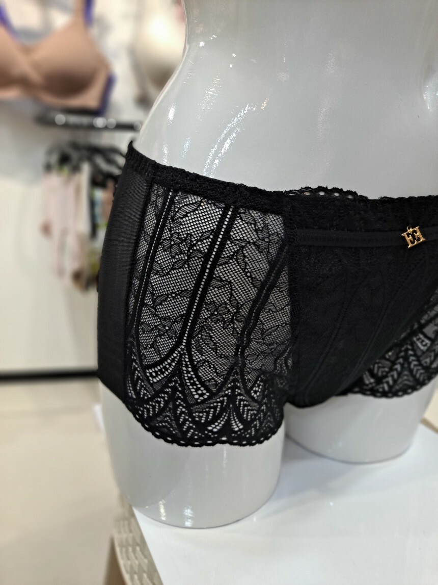 뒷판 중앙 레이스와 PN망을 매치하여 여성스러움을 강조하고 하이웨스트 스타일의 팬티 로