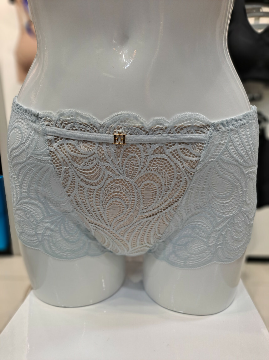 뒷판 중앙 레이스와 PN망을 매치하여 여성스러움을 강조하고 하이웨스트 스타일의 팬티 로