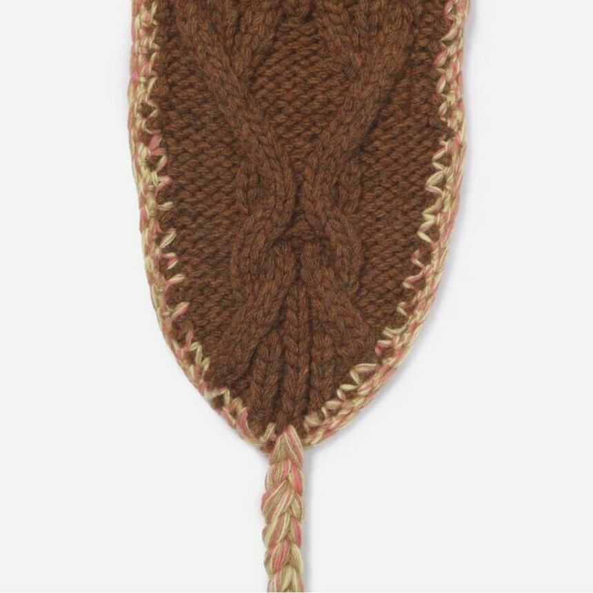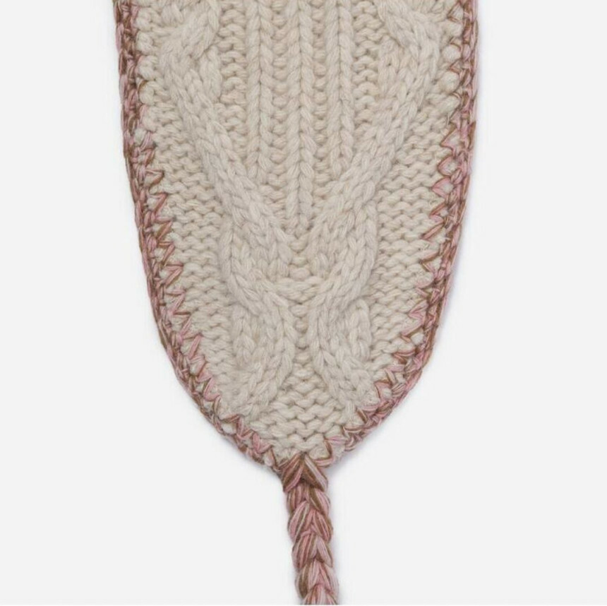 두께감 있는 케이블 조직의 울 소재 니트 스카프입니다.