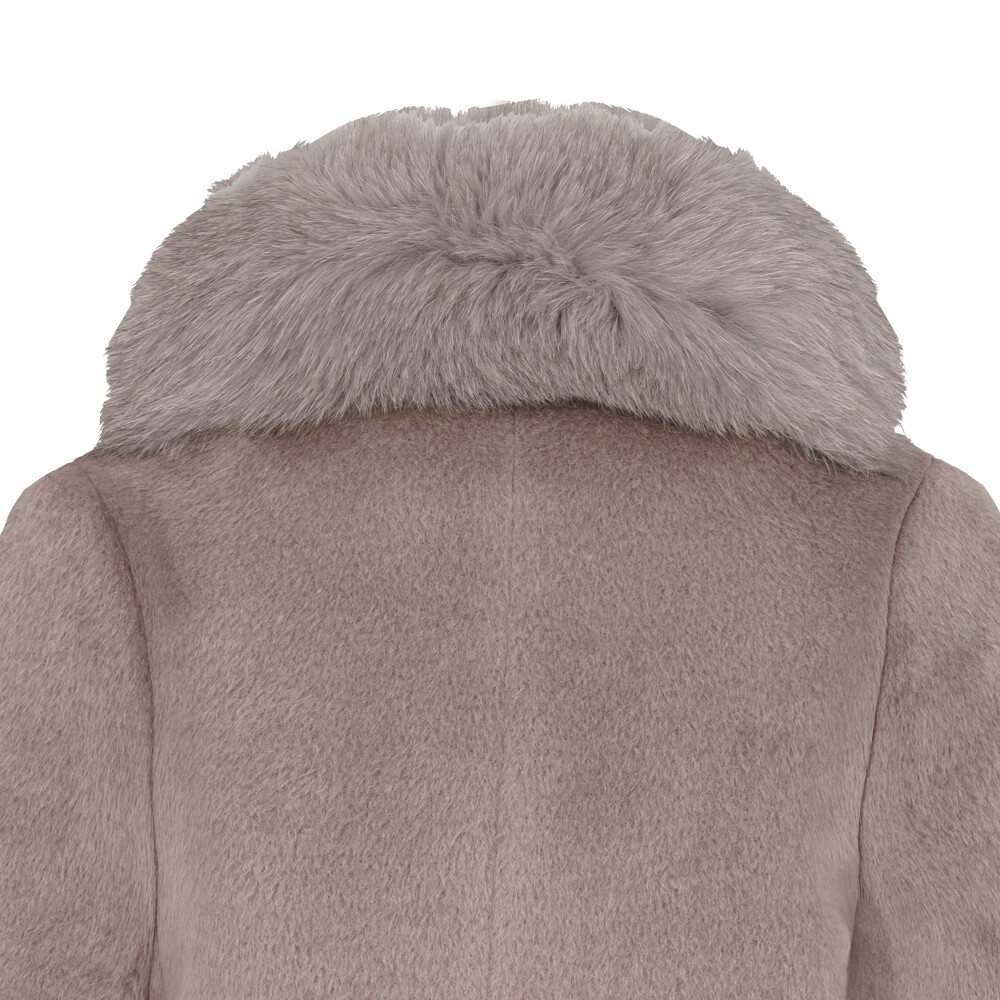 솔리드 알파카 코트 입니다. 스탠카라에 슬림한 싱글 코트 입니다. 폭스 카라가 탈부착 되면서 여성스러우면서고 시크하게 원피스나 정장 팬츠에 착용 할수 있는 데일리 코트입니다.