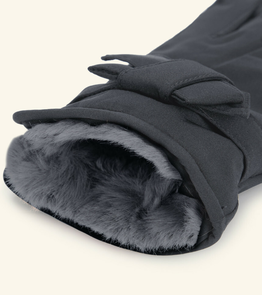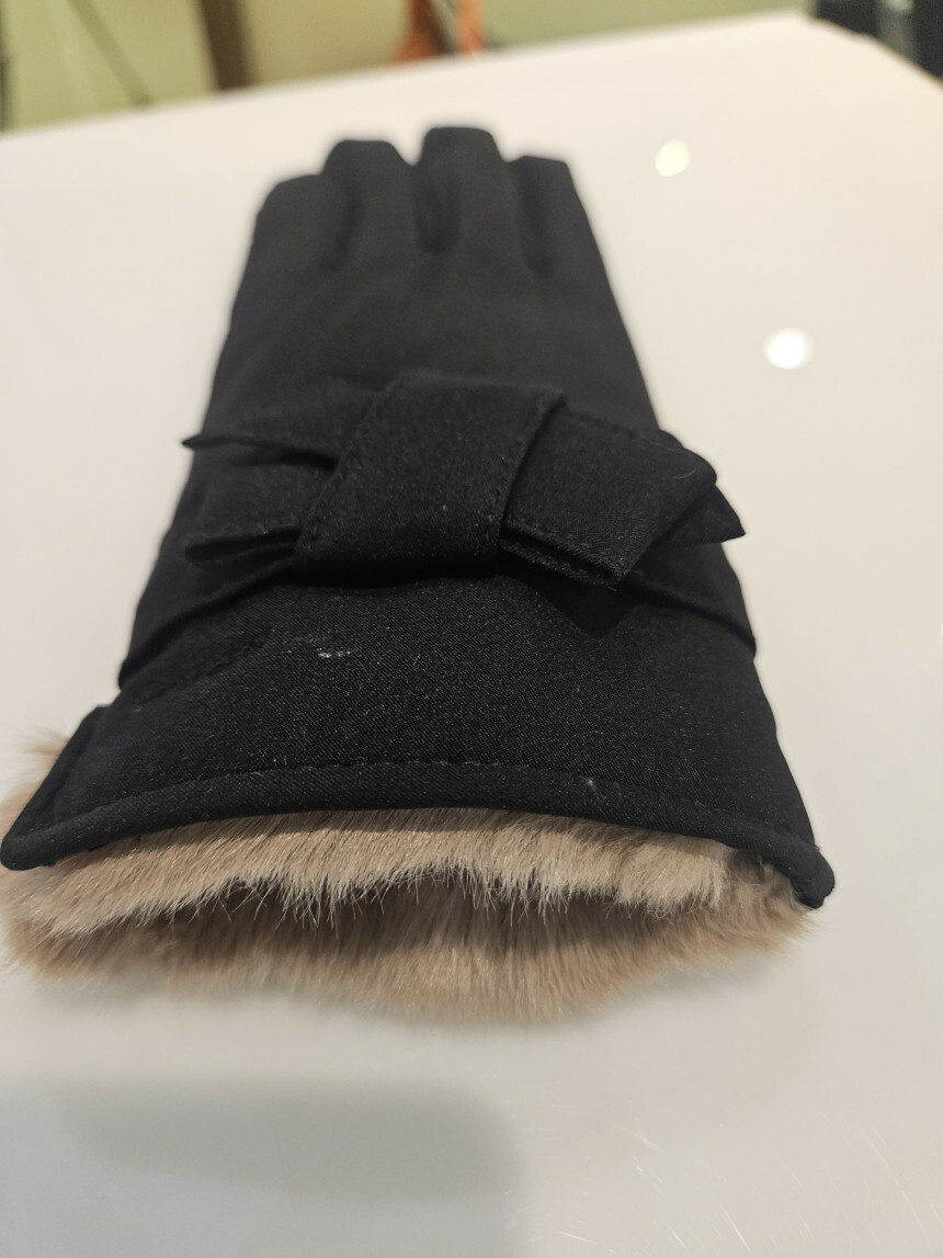 나일론 소재로 가볍고 하단의 렉스퍼와 리본 디테일로 포인트를 준 여성 장갑입니다