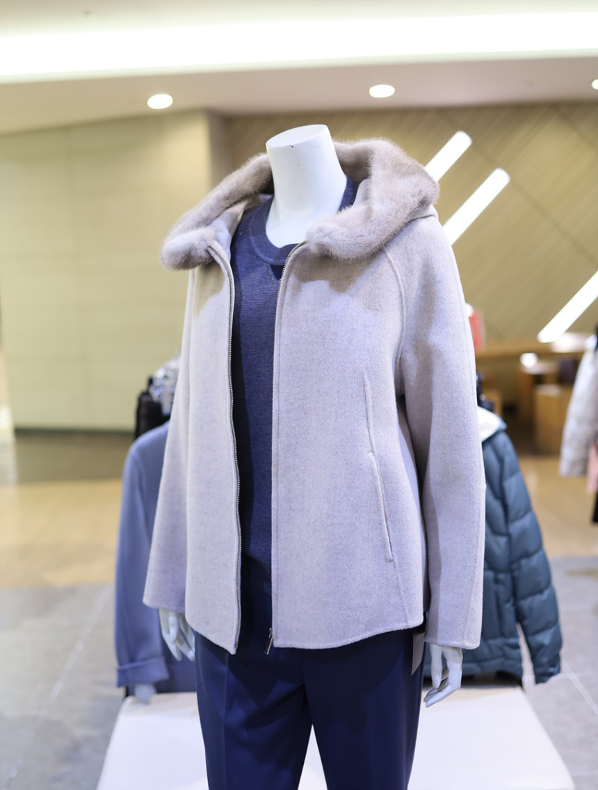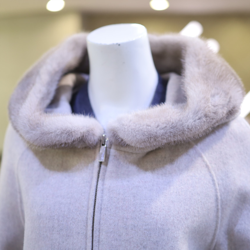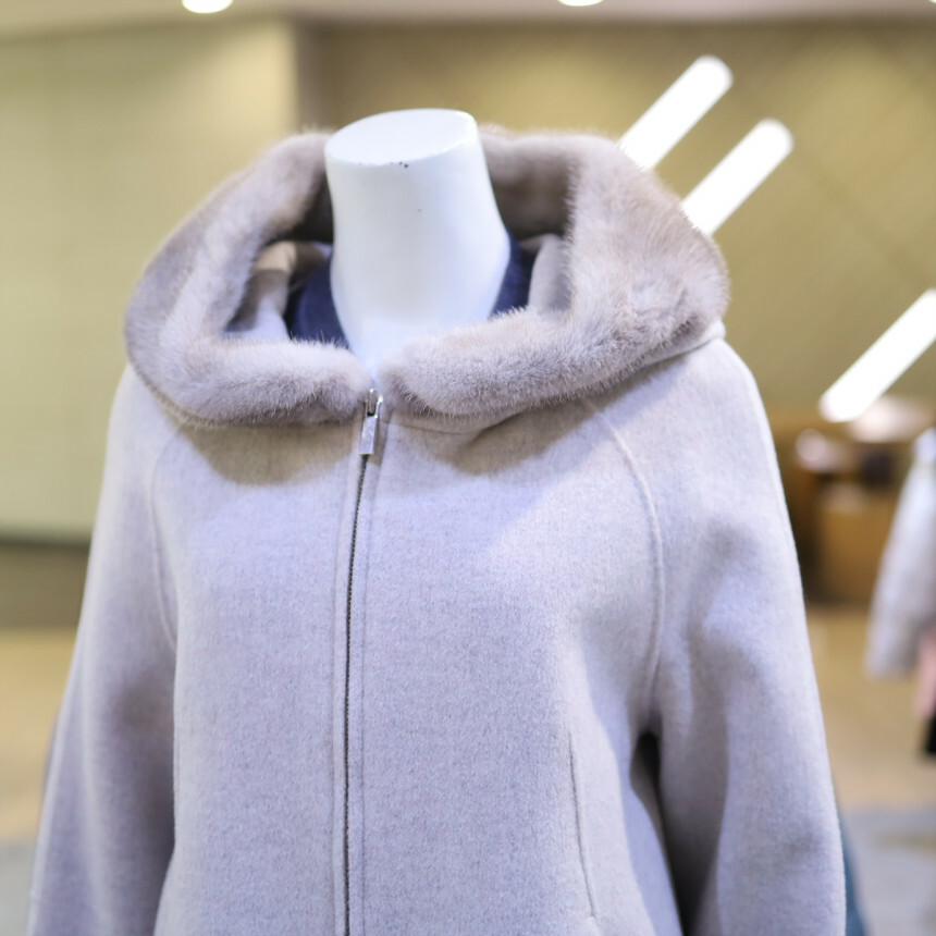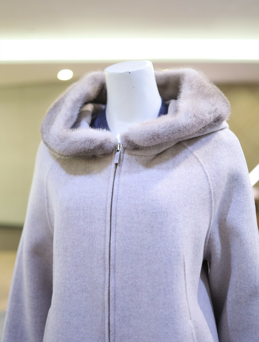 고급스러운 밍크 배색 후드로 포인트를 준 코트!