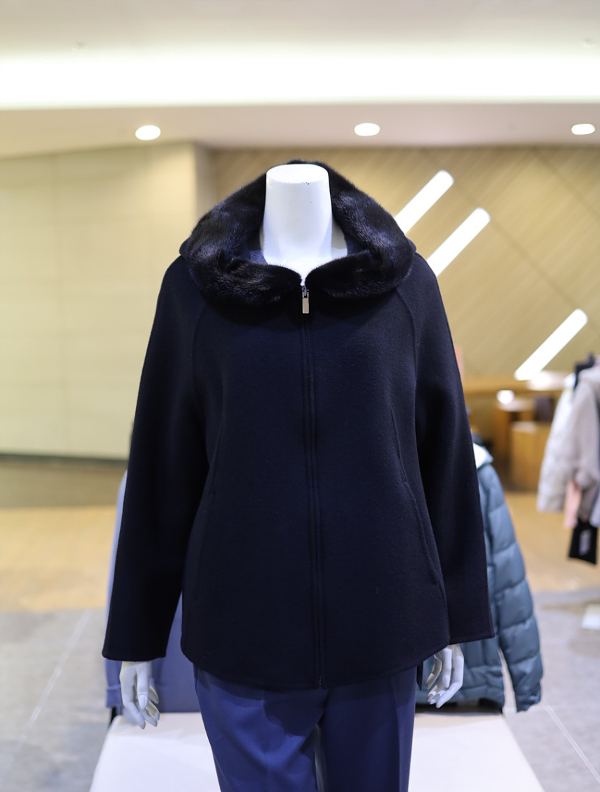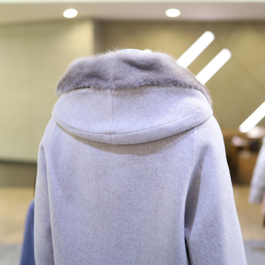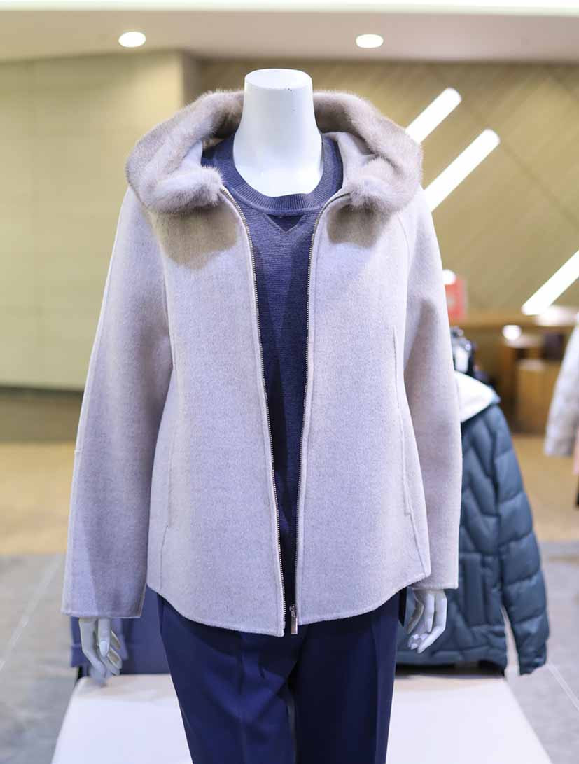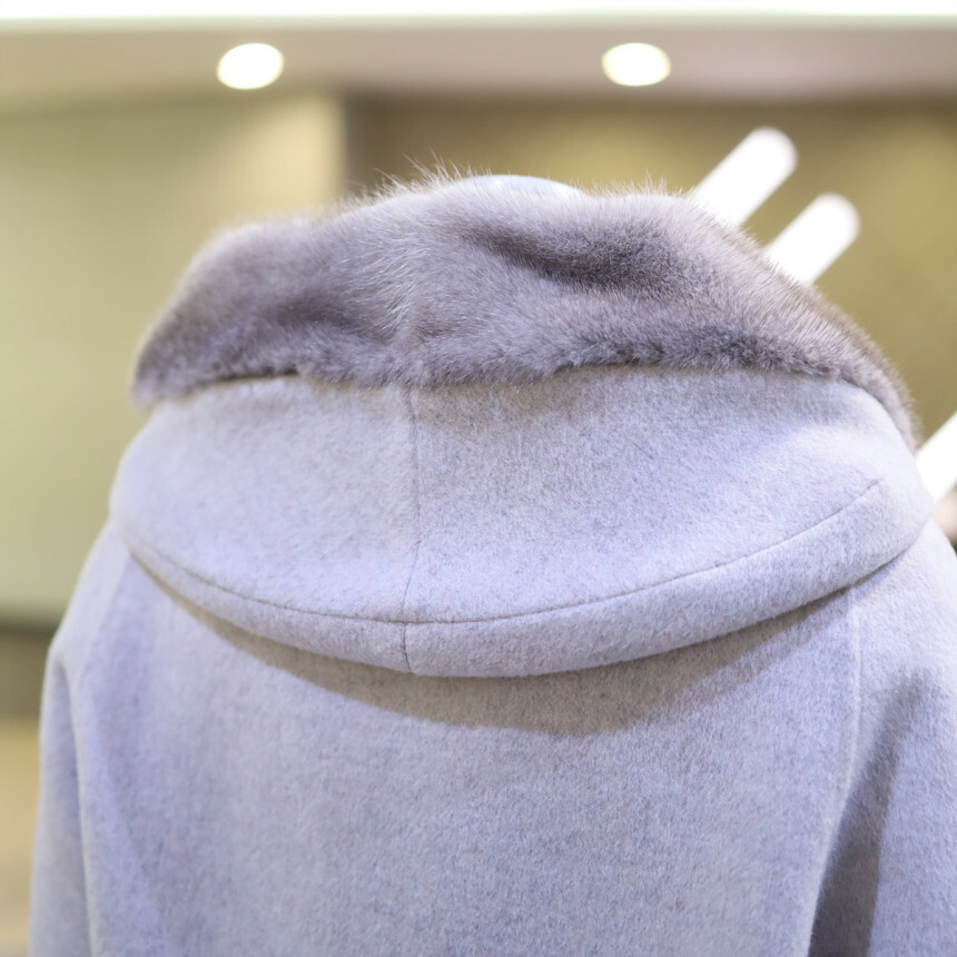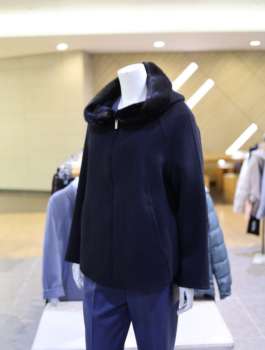 고급스러운 밍크 배색 후드로 포인트를 준 코트!