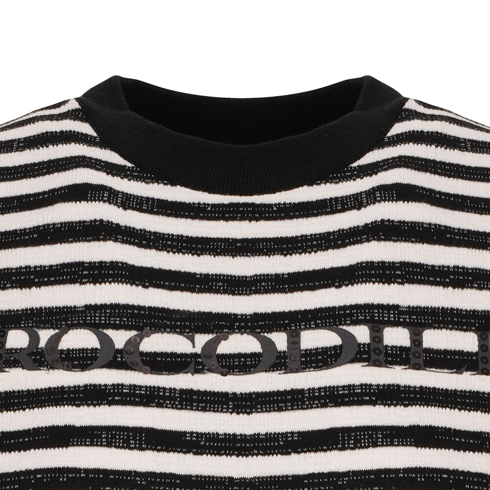 단도 스트라이프 티셔츠로 캐주얼하게 데일리룩으로 연출 가능한 아이템입니다.앞판 레터링 비딩이 포인트인 아이템입니다