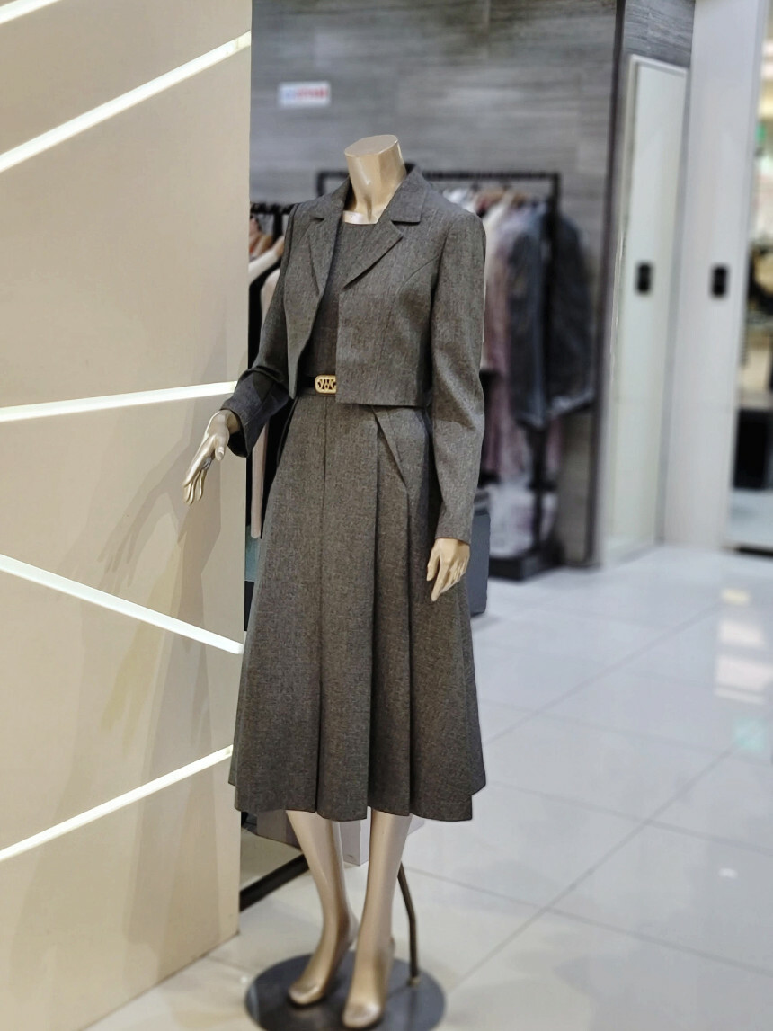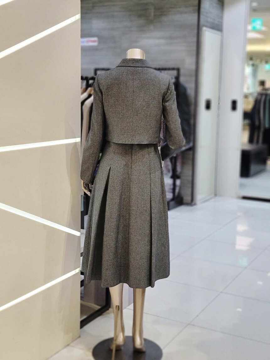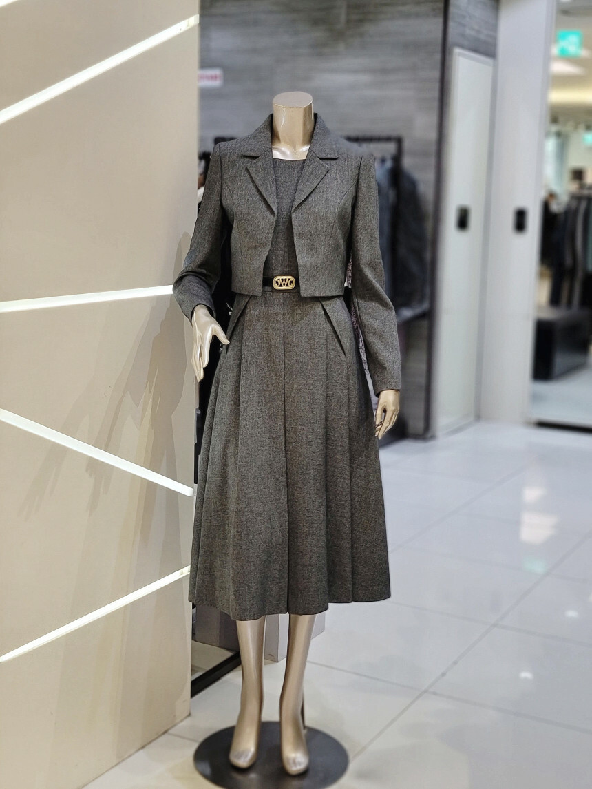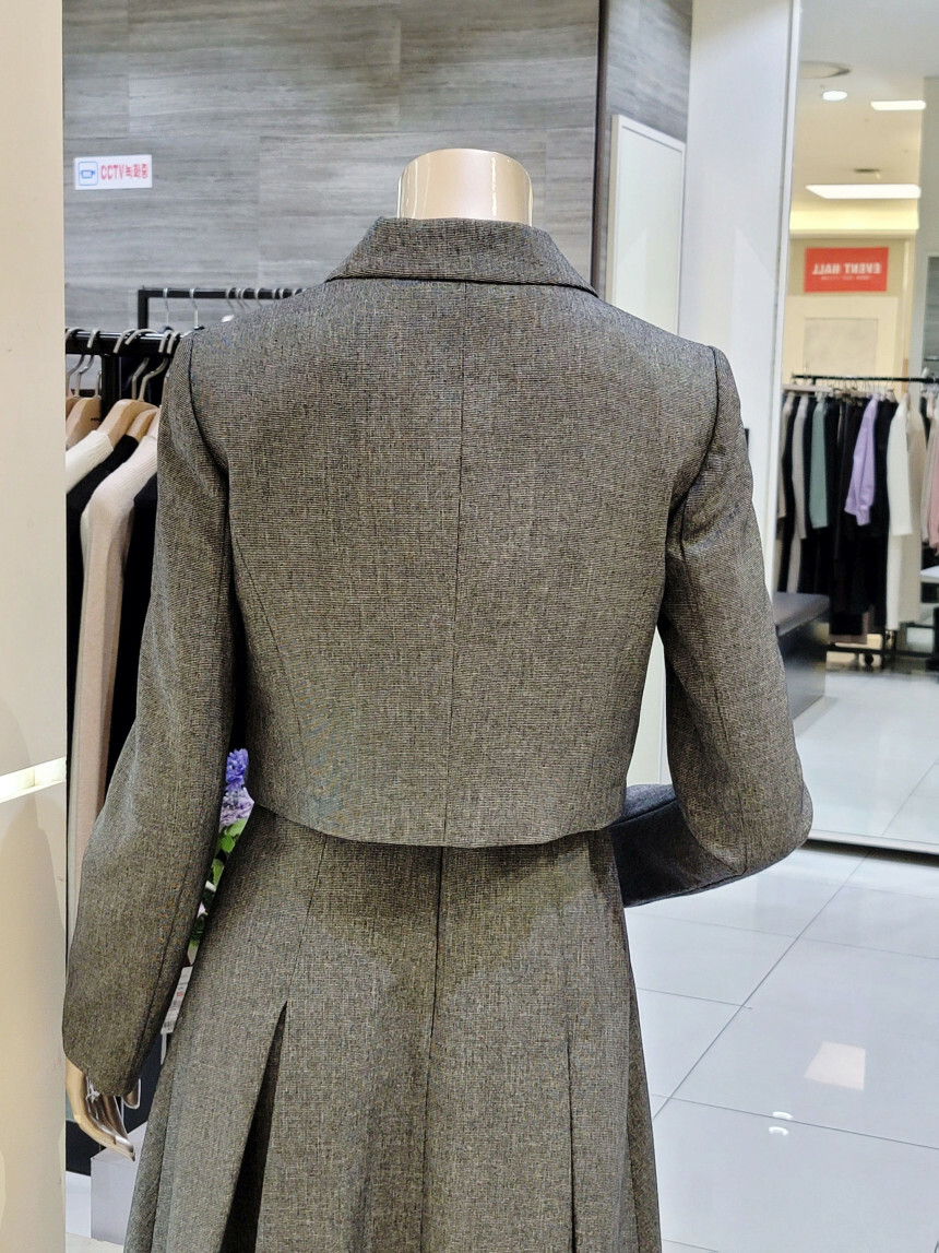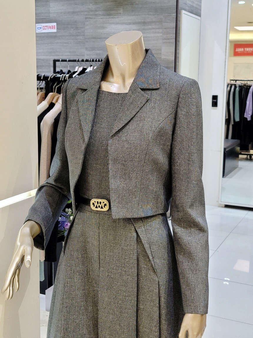 테일러드 재킷과 원피스가 세트로 구성된 포멀 셋업 원피스입니다.