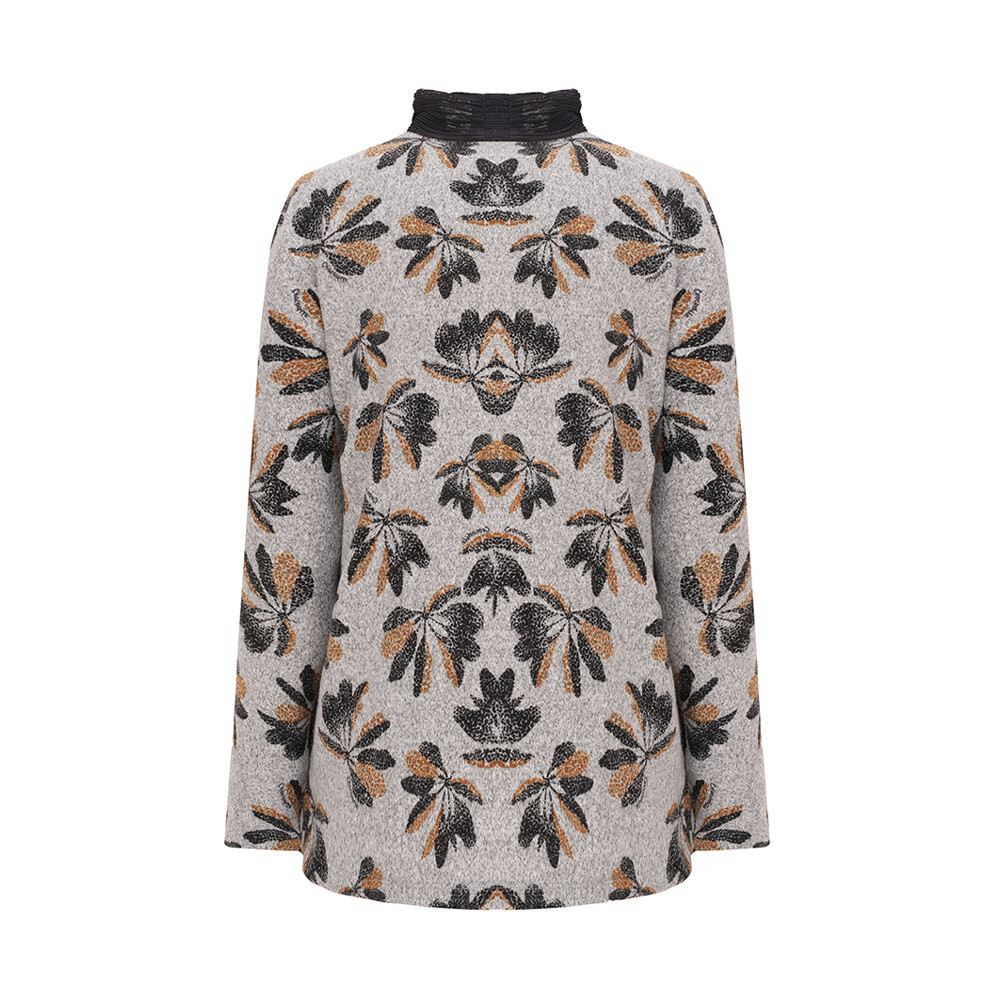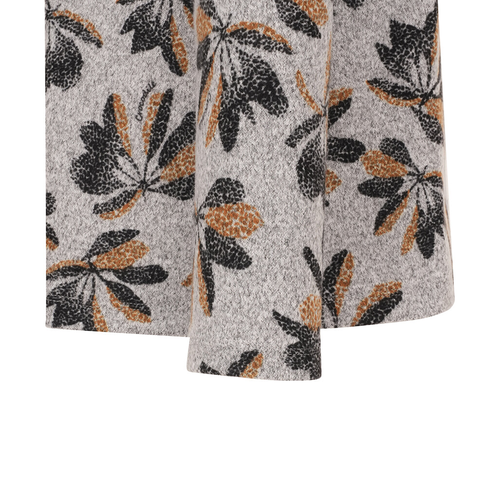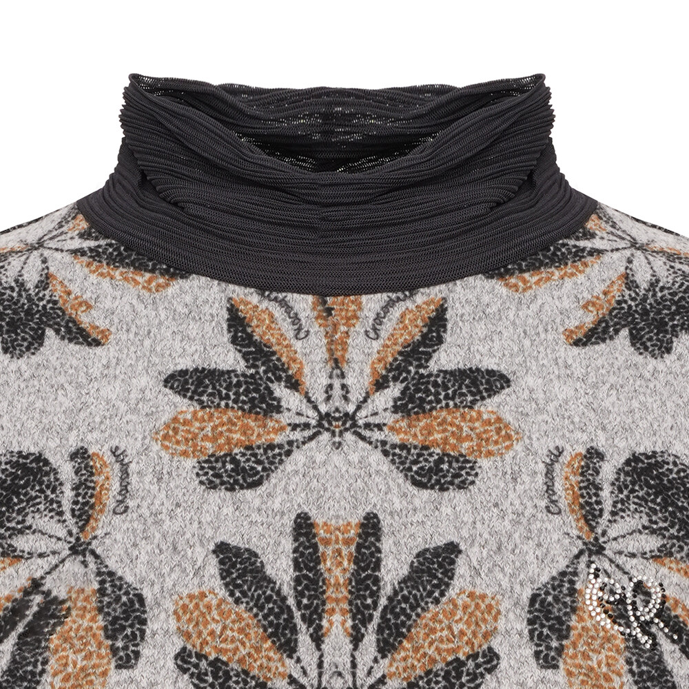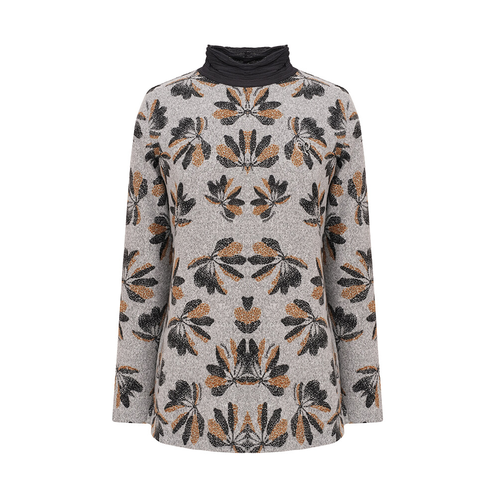 미르기모 소재를 사용하였고 전판 프린트에 네크 매쉬배색이 포인트인 반넥 풀오버 티셔츠