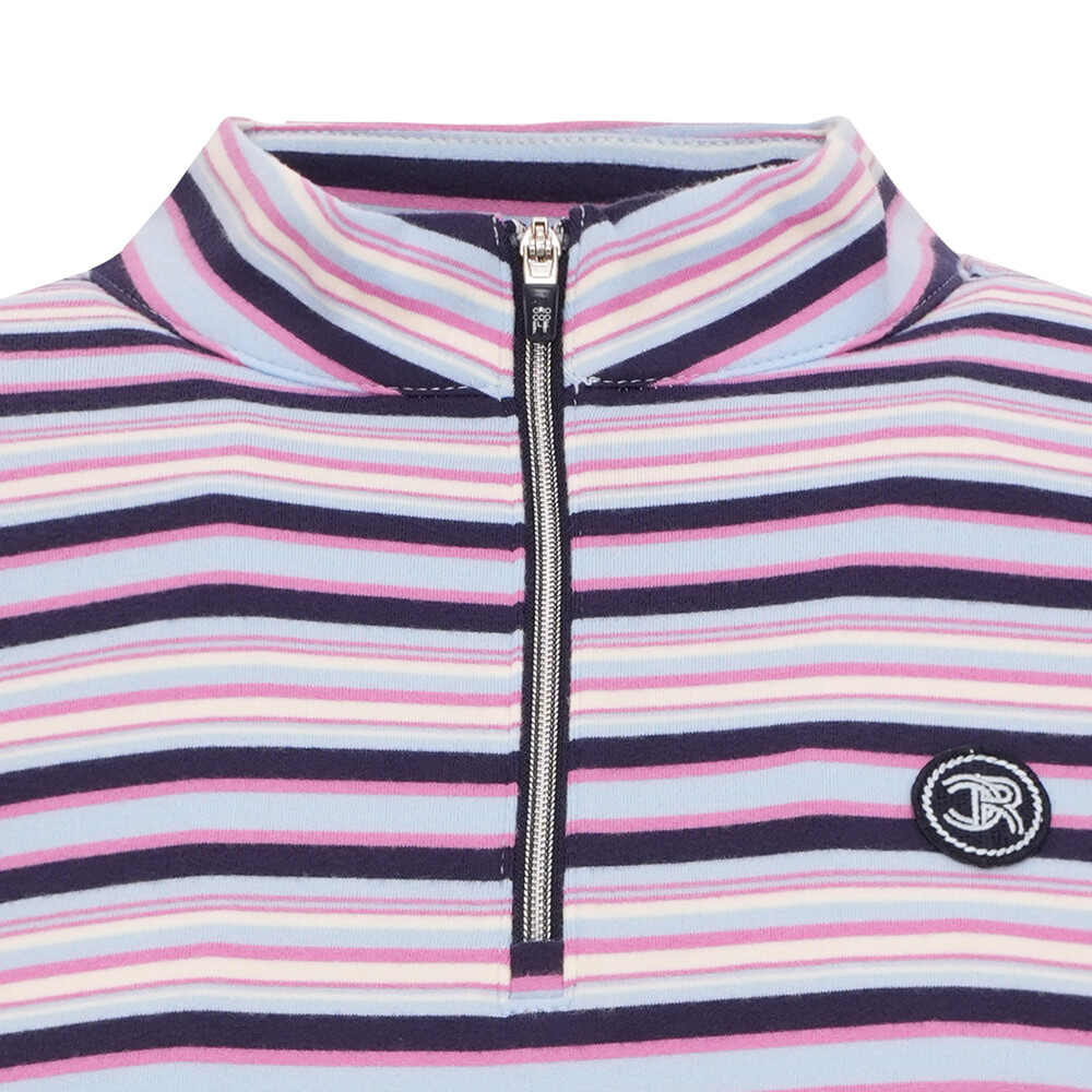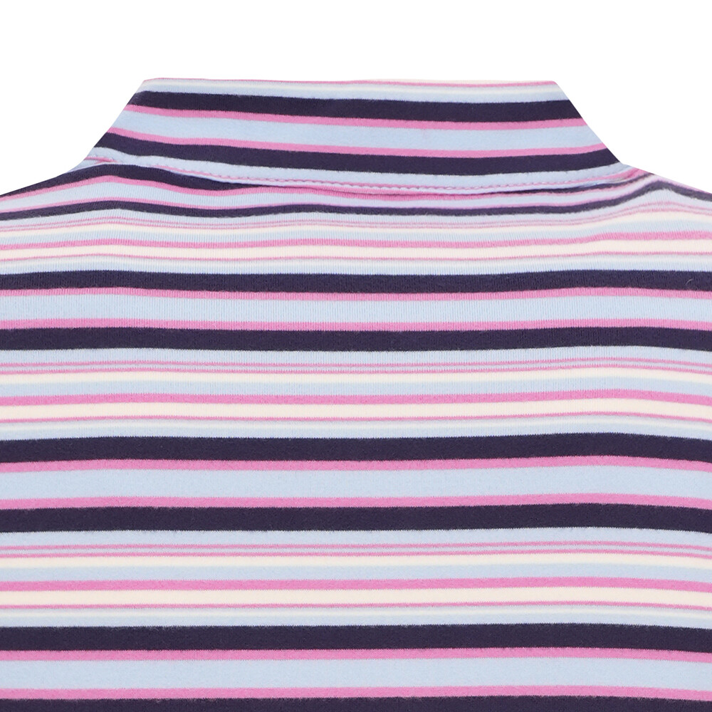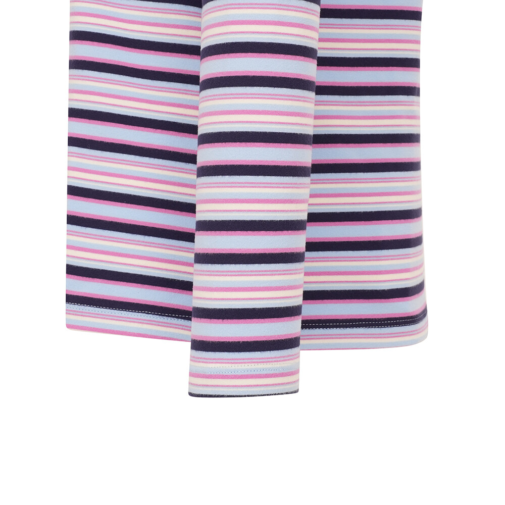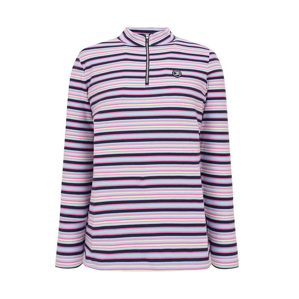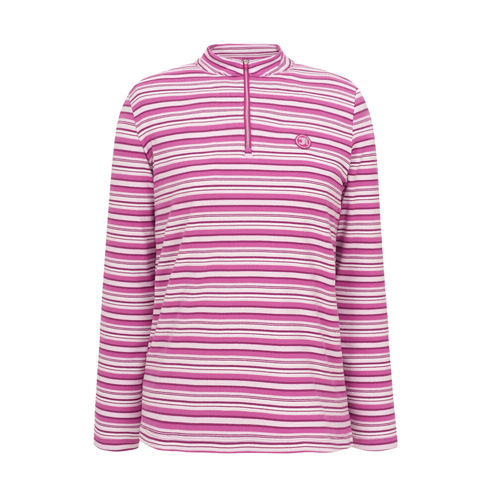 부드러운 코트나 소재를 사용하였고 전판 좁은 단가라 선염 스트라이프가 포인트인 기본 반집업 티셔츠