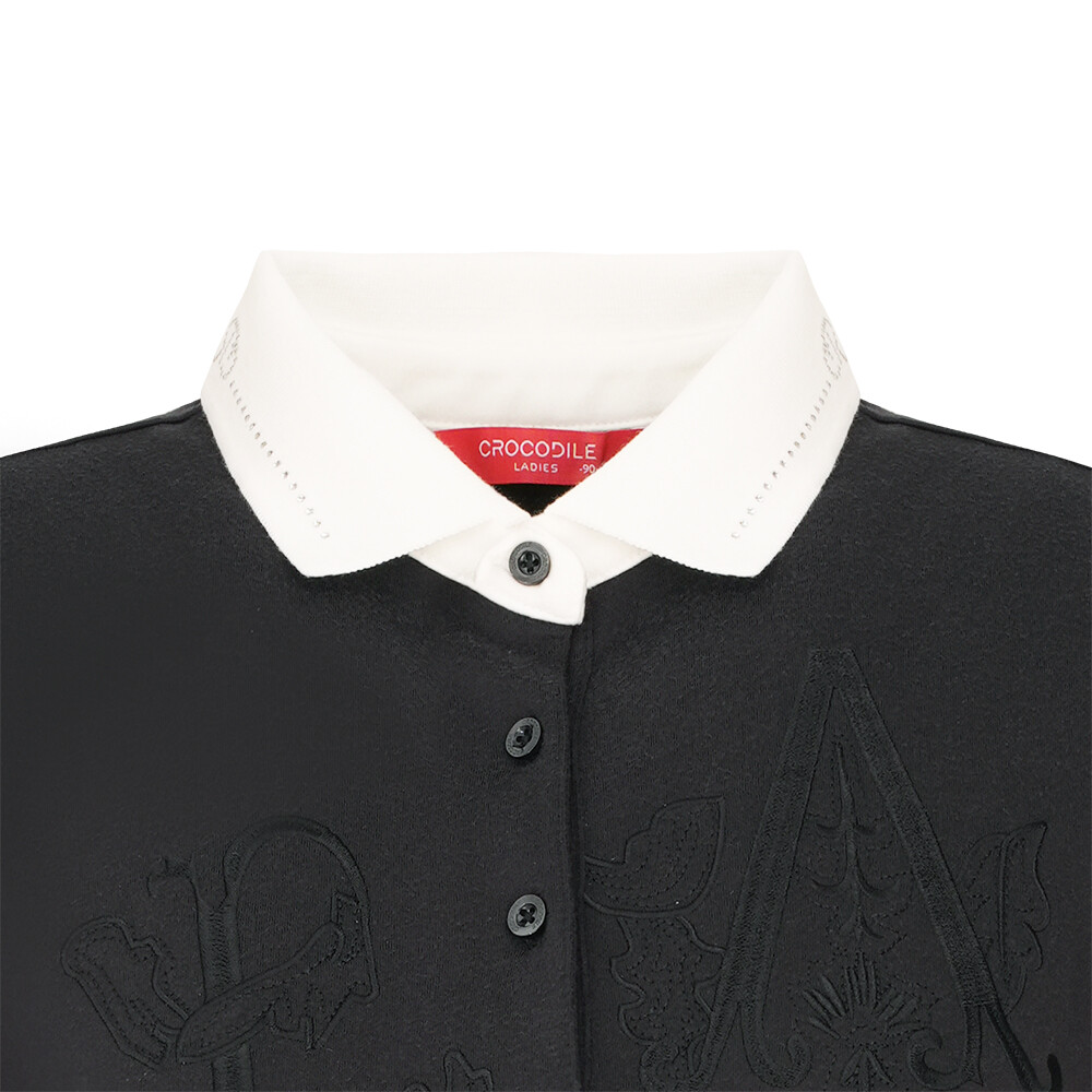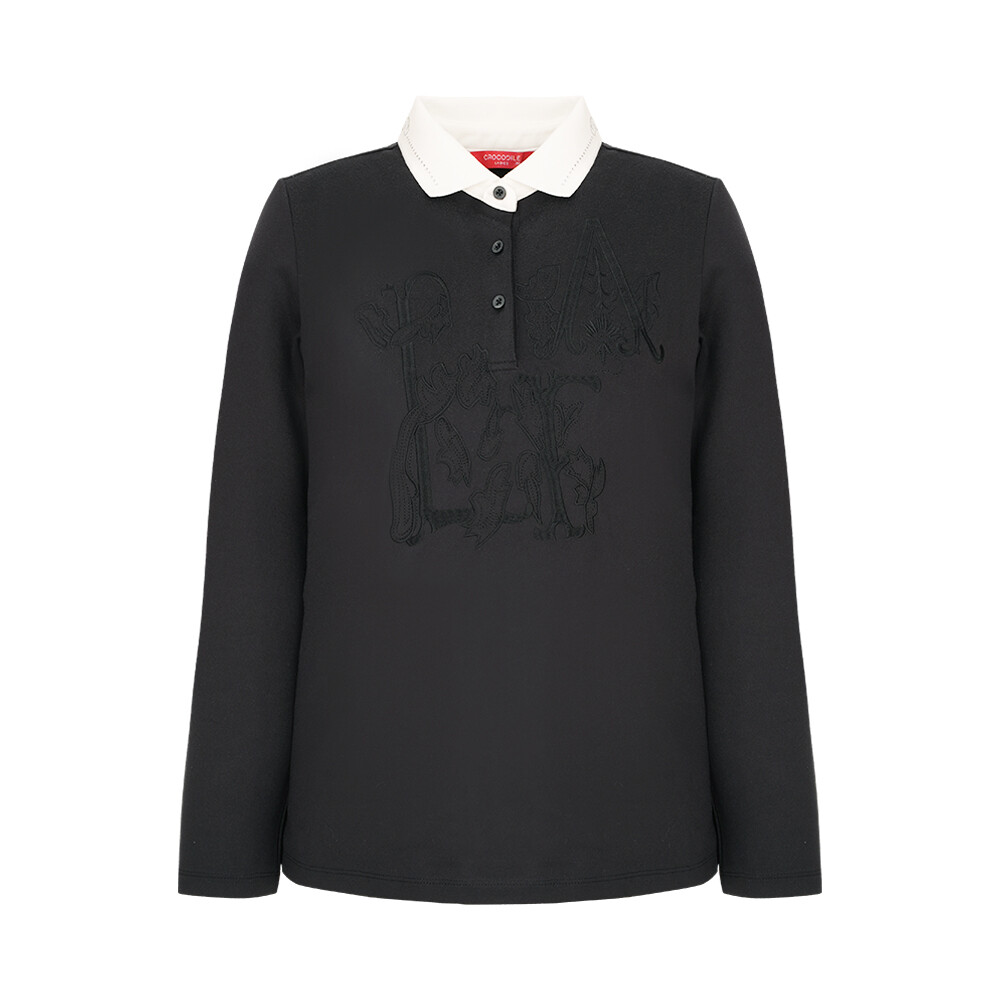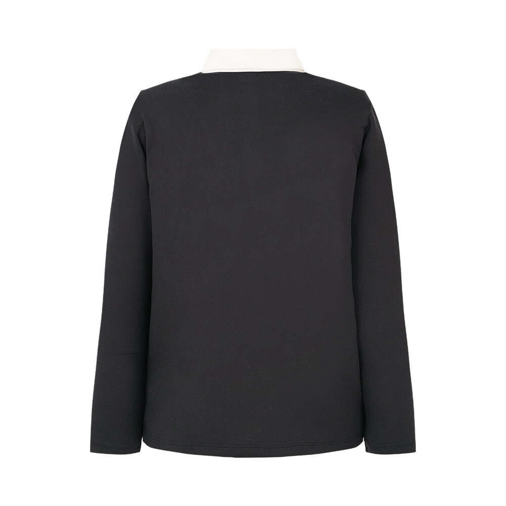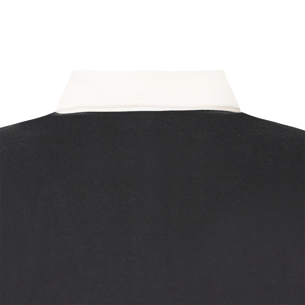 부드럽고 따뜻한 카치온 소재를 사용하였고 카라와 몸판 극배색으로 깔끔함을 더하고 앞판 자수가 고급스러운 카라 티셔츠
