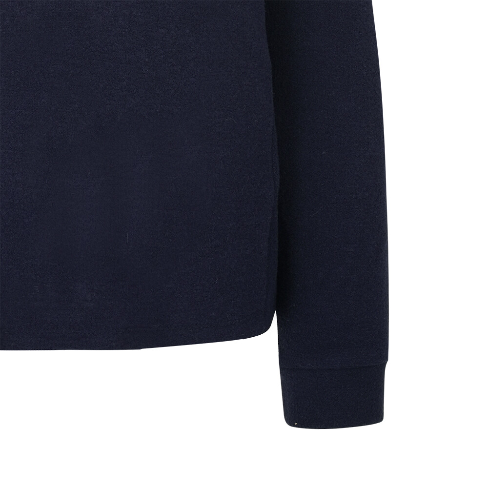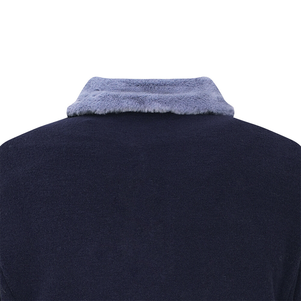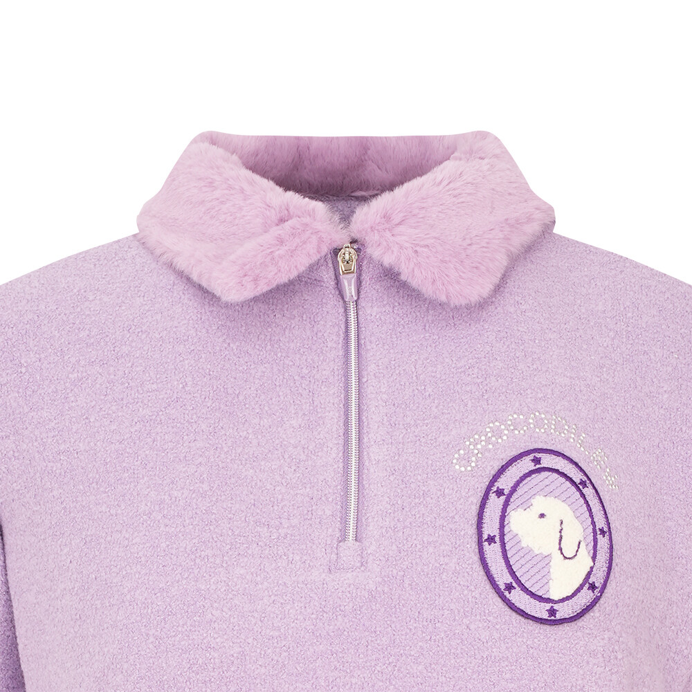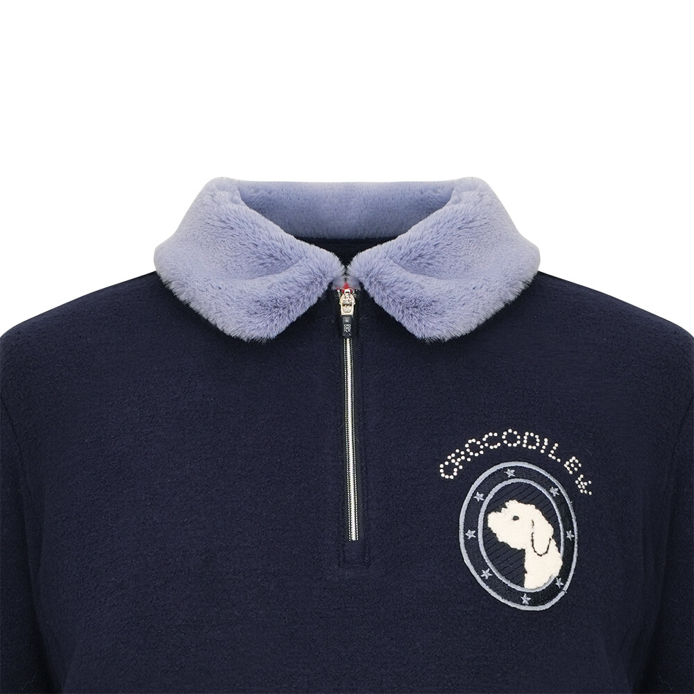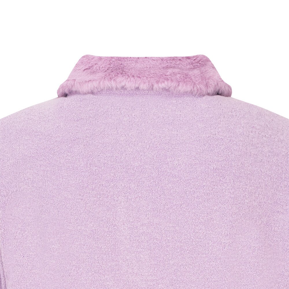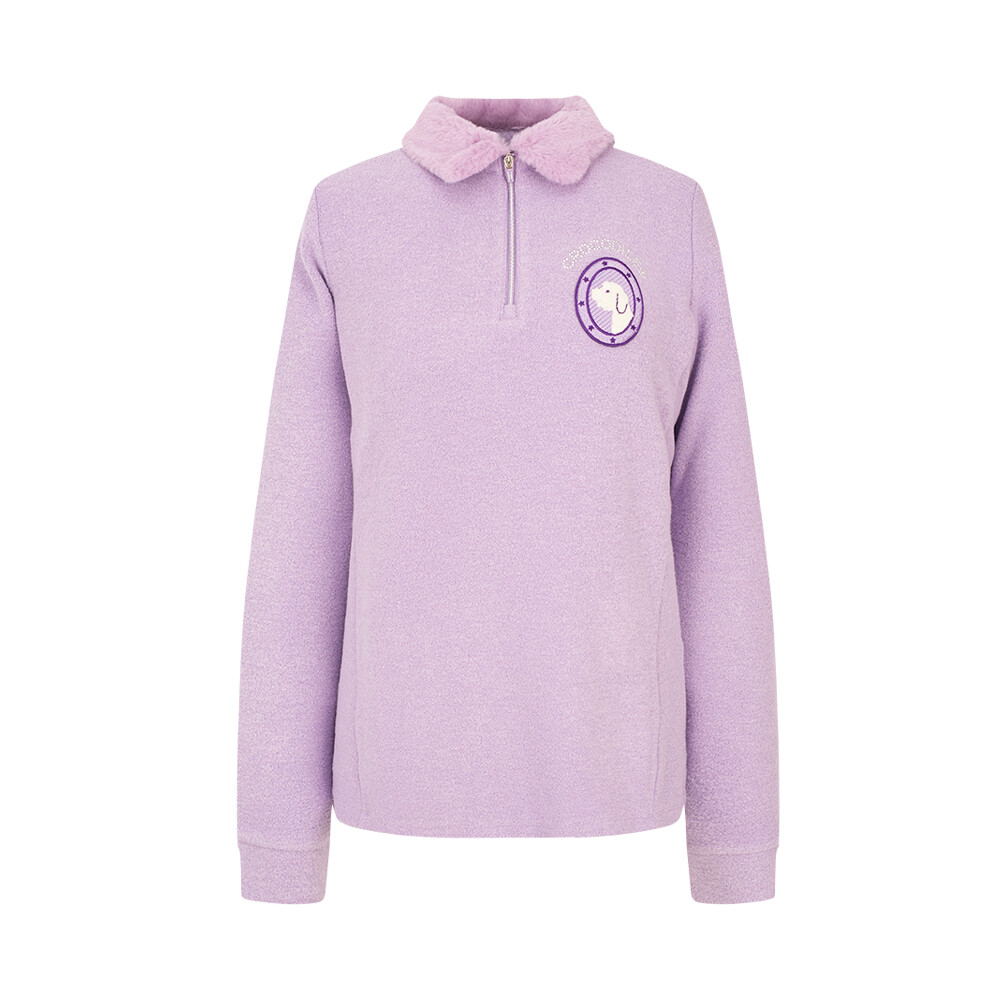전판 부클소재와 카라 털배색이 깔끔하고 세련되었으며 가슴와펜이 귀여운 카라 티셔츠