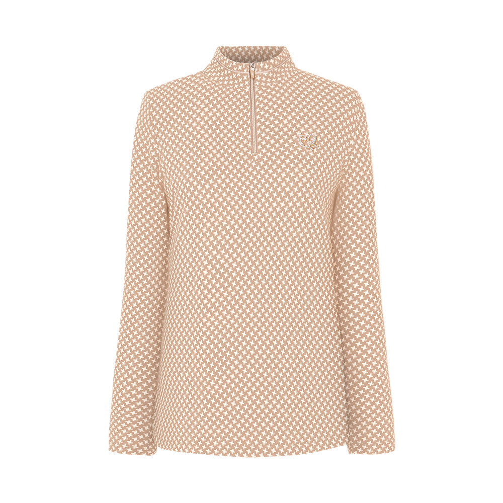 코트나 카바링 자카드로 따뜻하고 부드러우며 전판 기하학 무늬가 세련된 반집업 티셔츠
