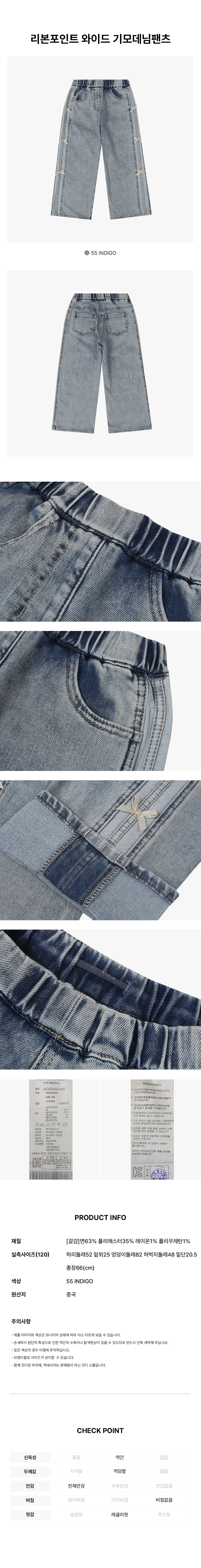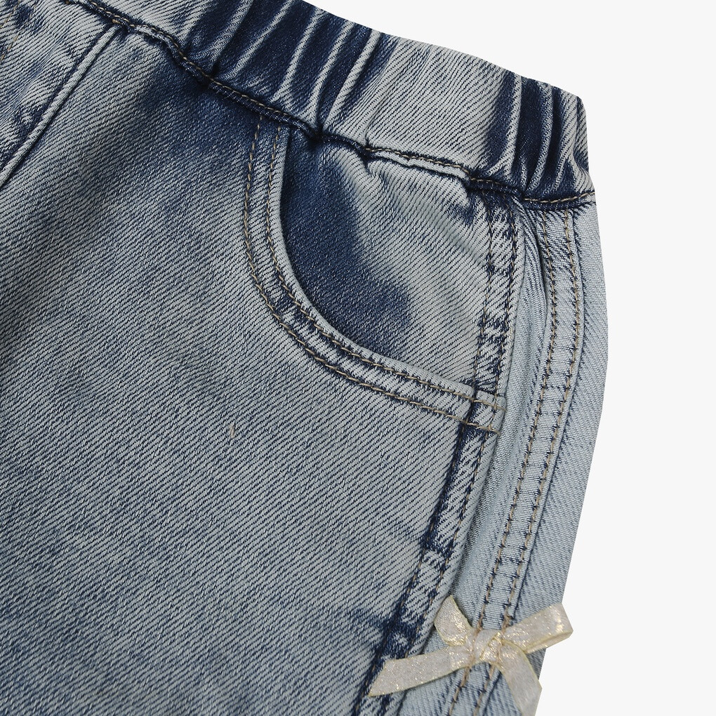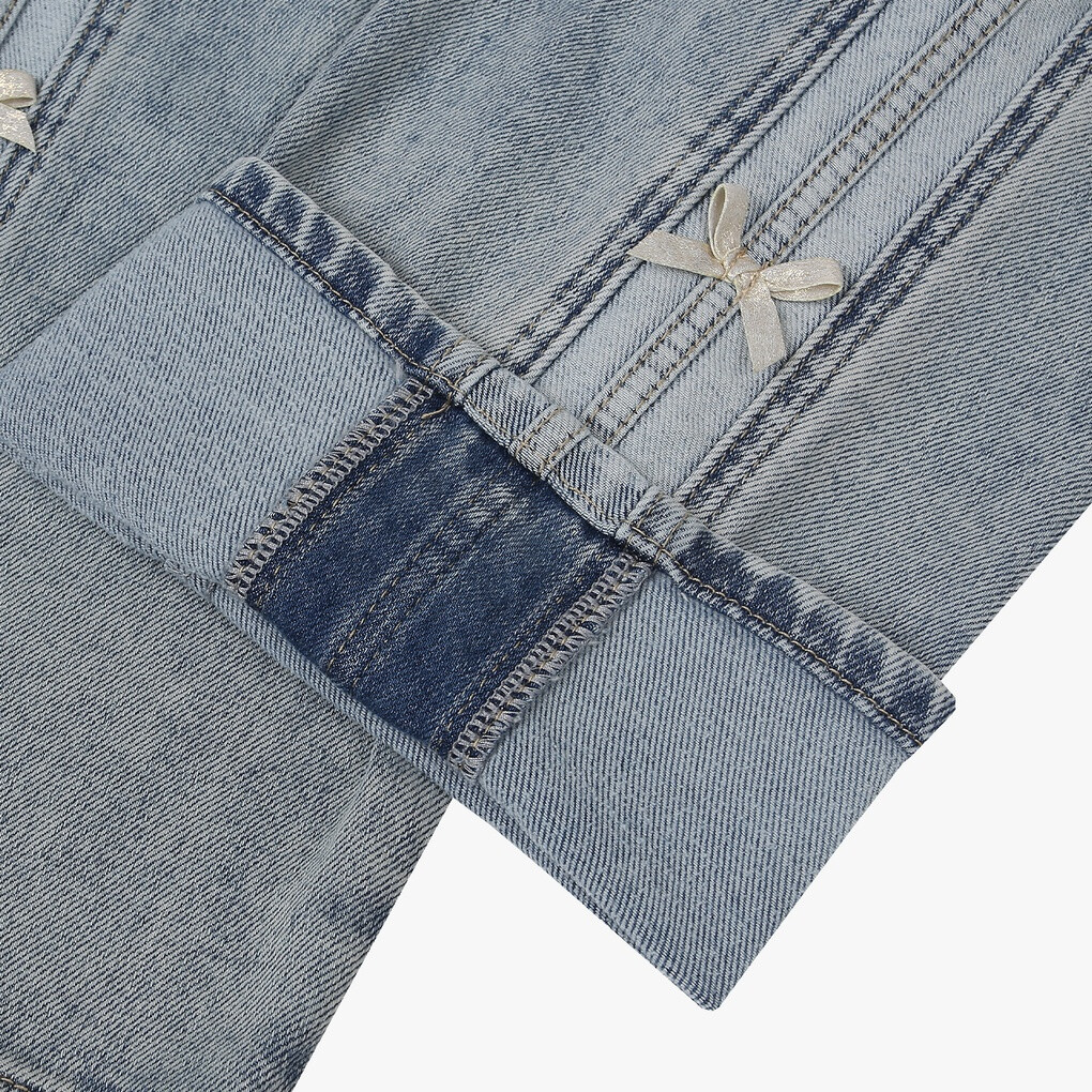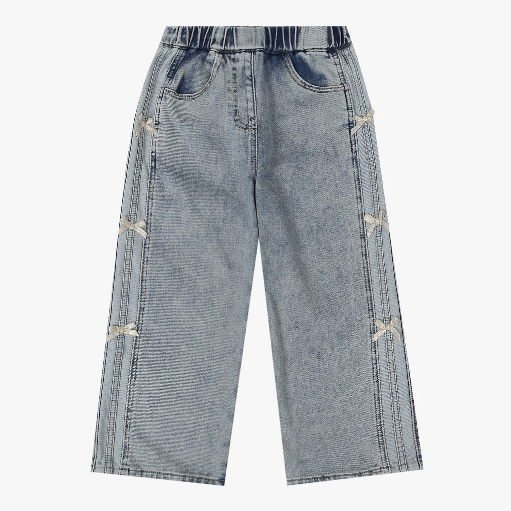리본포인트 와이드 기모데님팬츠
