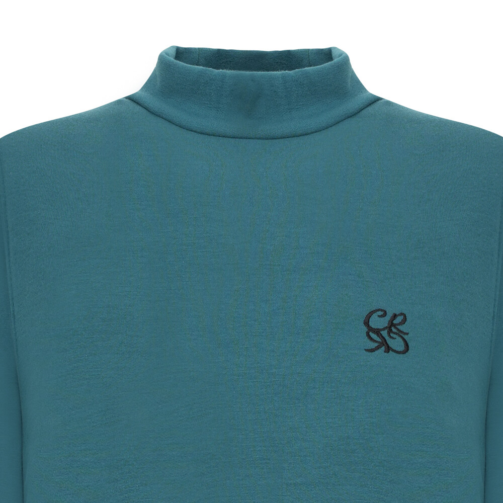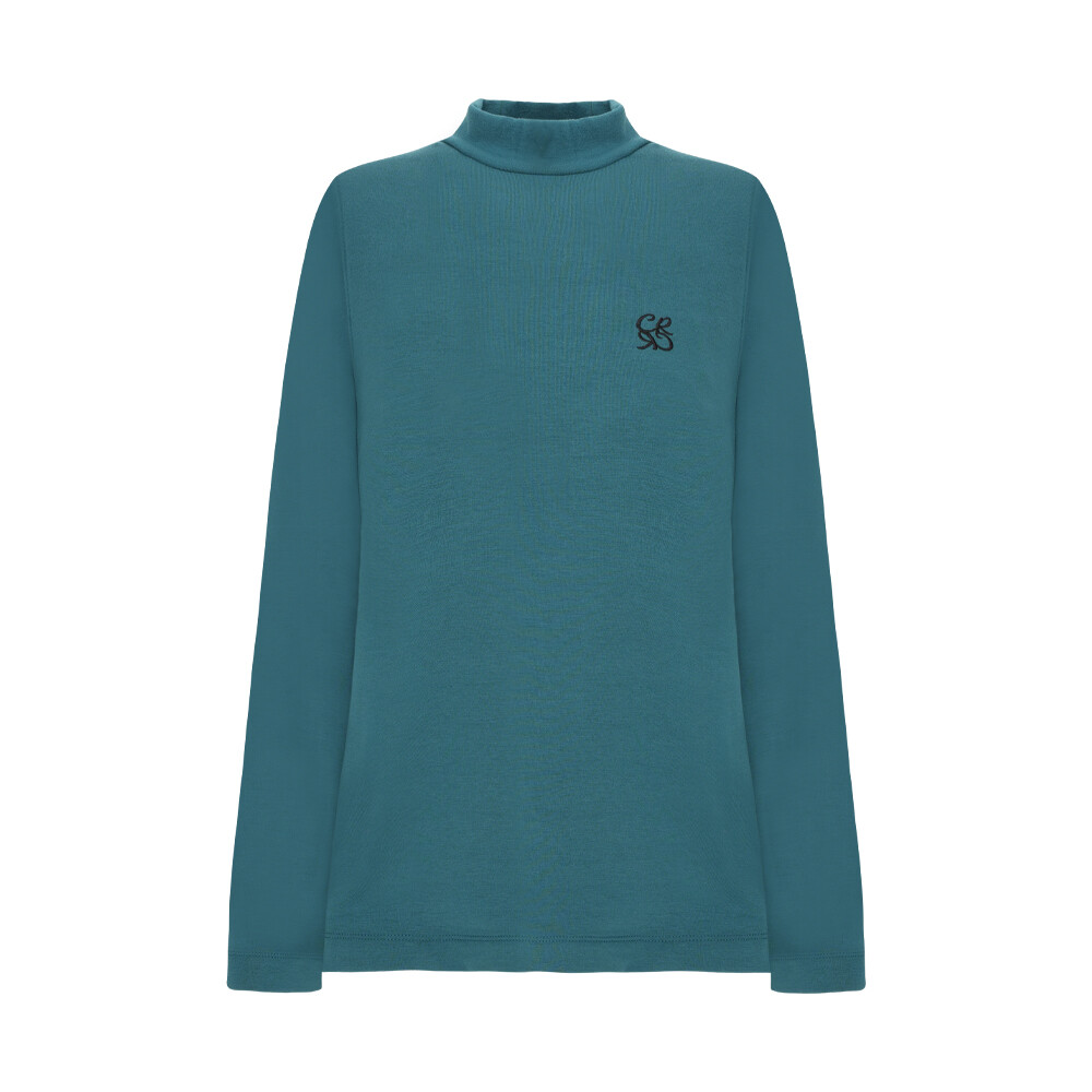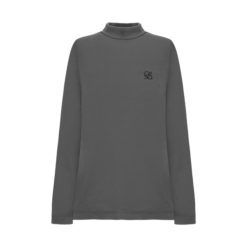 실루엣 변형으로 젋고 세련된 솔리드 반넥 티셔츠입니다. 고급스러운 자수가 포인트입니다