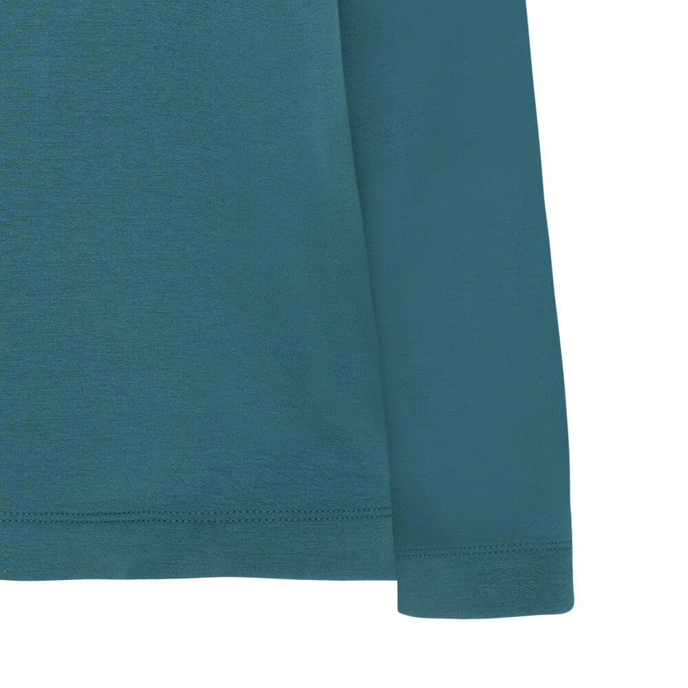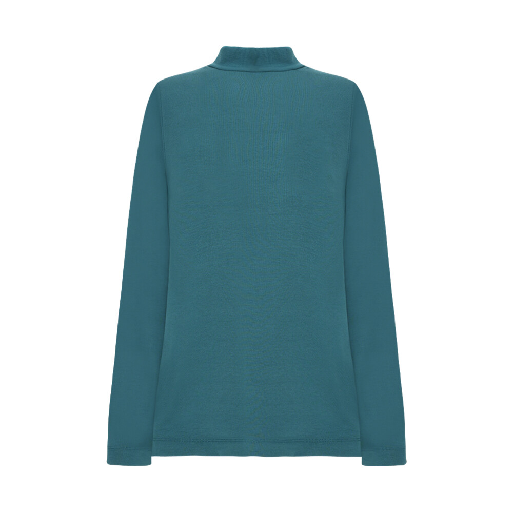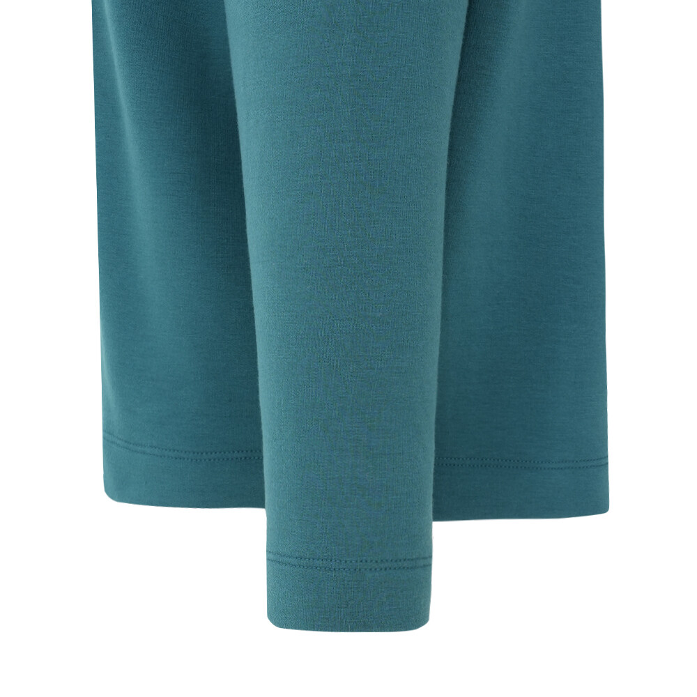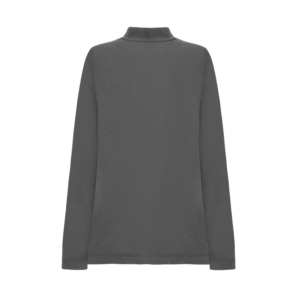실루엣 변형으로 젋고 세련된 솔리드 반넥 티셔츠입니다. 고급스러운 자수가 포인트입니다