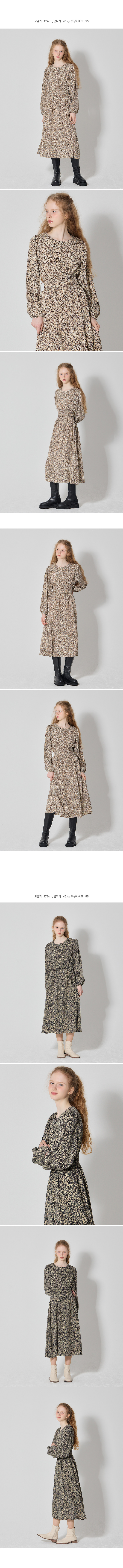 전체적인 호피 패턴으로 스타일리시한 롱 원피스입니다. 브랜드만의 고급 소재를 활용하여 우수한 착용감을 선사합니다. 허리부분 밴딩으로 슬림한 실루엣을 주는 아이템입니다.