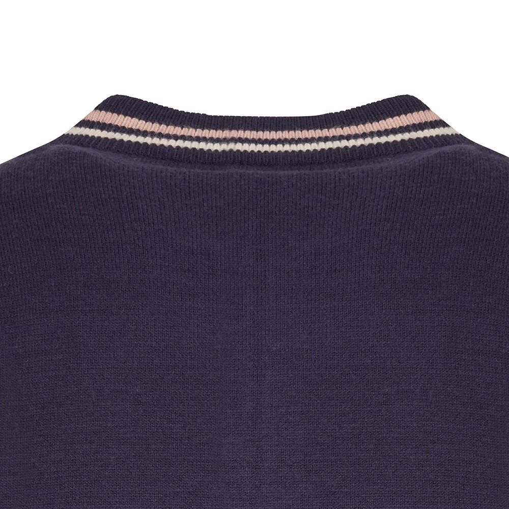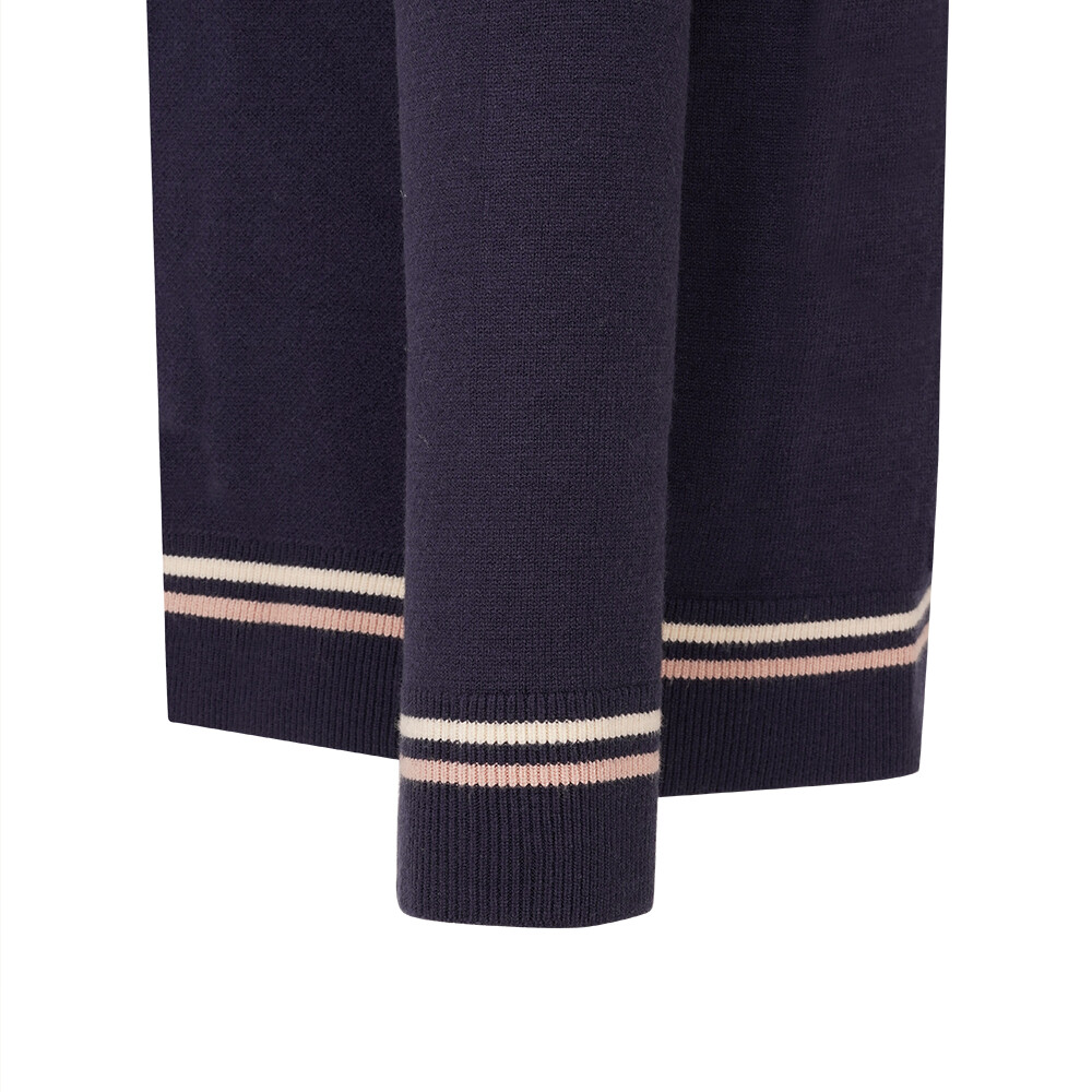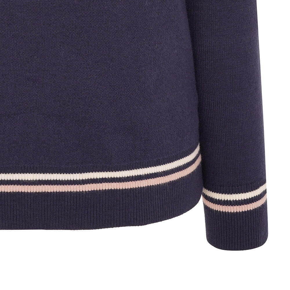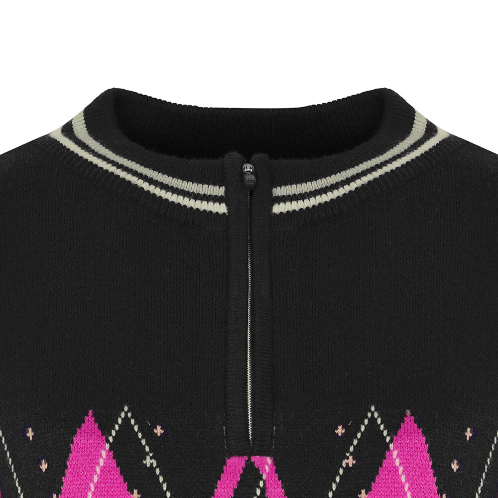 앞판 아가일 무늬 자카드와 스팽글 자수가 포인트인 반집업 스웨터