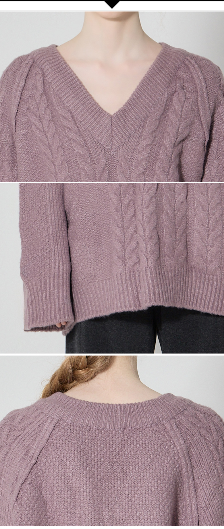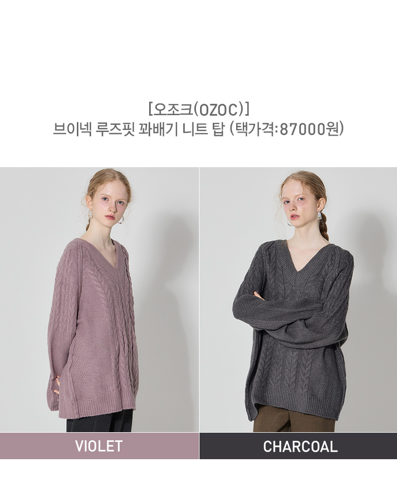 ITEM : 브이넥 오버사이즈 꽈배기 니트 탑