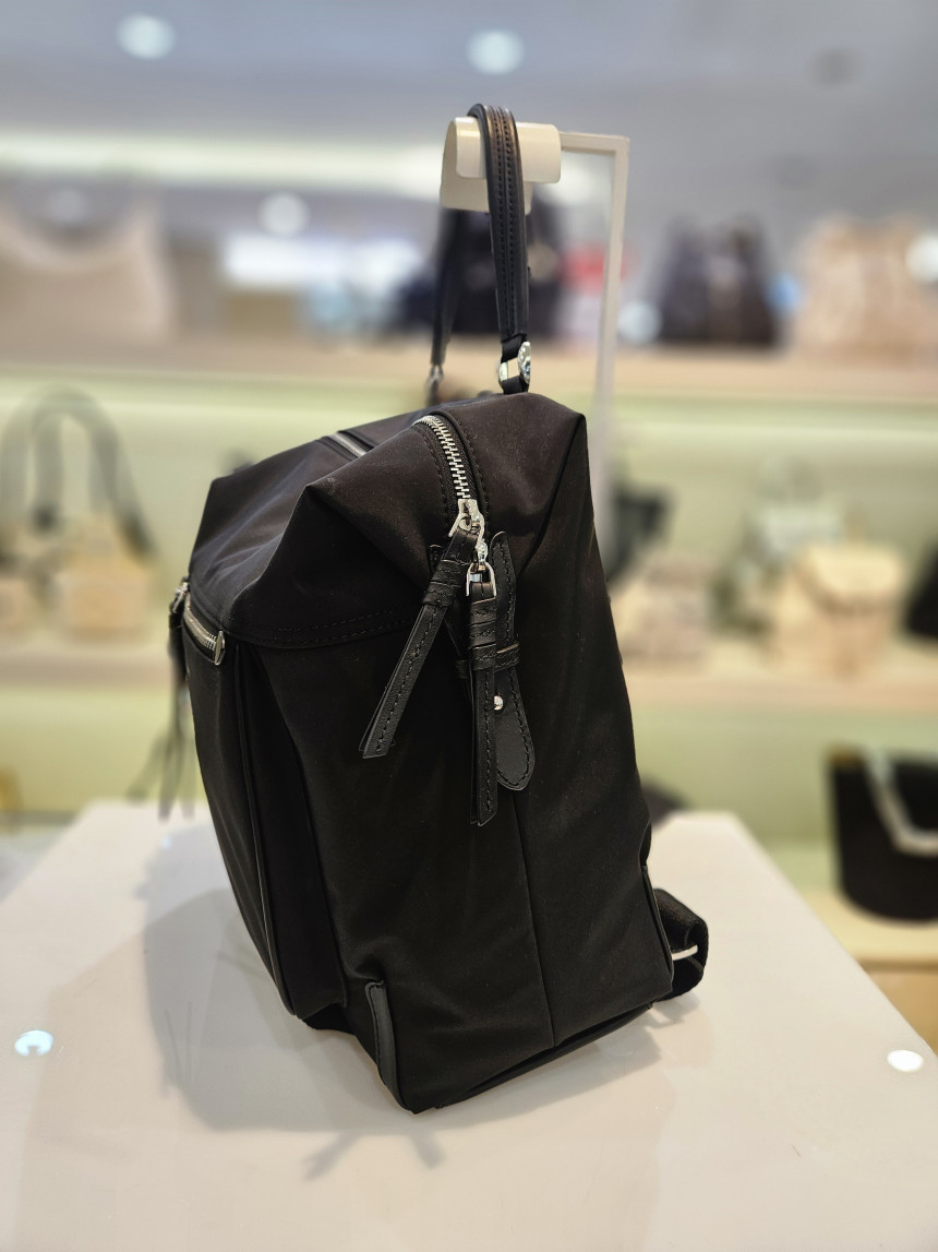 매트한 질감의 고급스러운 원단과 소가죽을 콤비한 캐주얼룩과 포멀한 룩 등 다양한 연출이 가능한 백팩입니다.